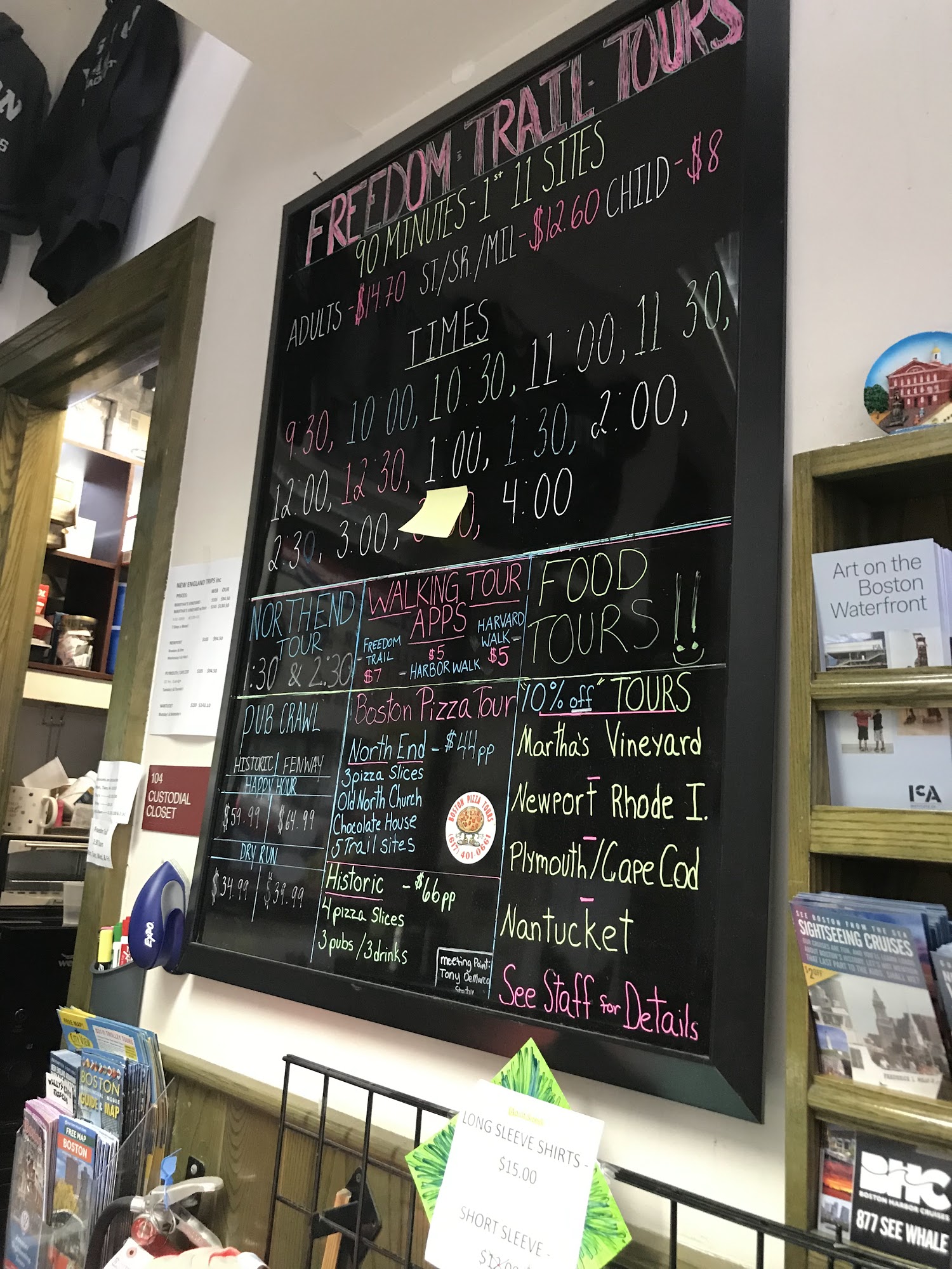 The Boston Common Visitor Center is open 7 days a week and is located at the beginning of Boston's Famous Freedom Trail. The Staff at the Center makes recommendations on where to stay, places to dine, attractions, tours and what’s happening in town. Additionally, the staff sells merchandise and tickets, and they distribute publications and maps.