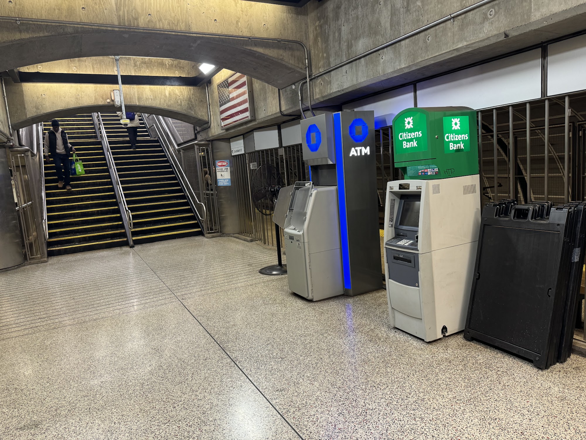 Beware those jw people hang around at north Station too close to u while try get the money and beware person is behind your back while working on the money try take picture of the pin number on machine behind your back no mbta police there