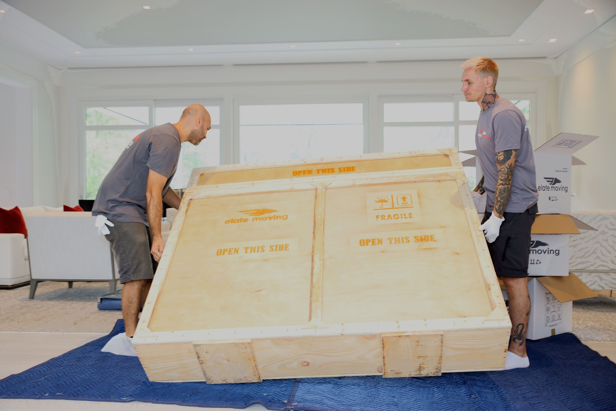 George and his crew did a phenomenal job. They hit it out of the park. We moved out commercial kitchen from one location to another. There were difficult parameters and they moved everything without a problem. I HIGHLY recommend Elate Moving and you’ll be in good hands with George and his crew. THANK YOU!!!- Nancy
