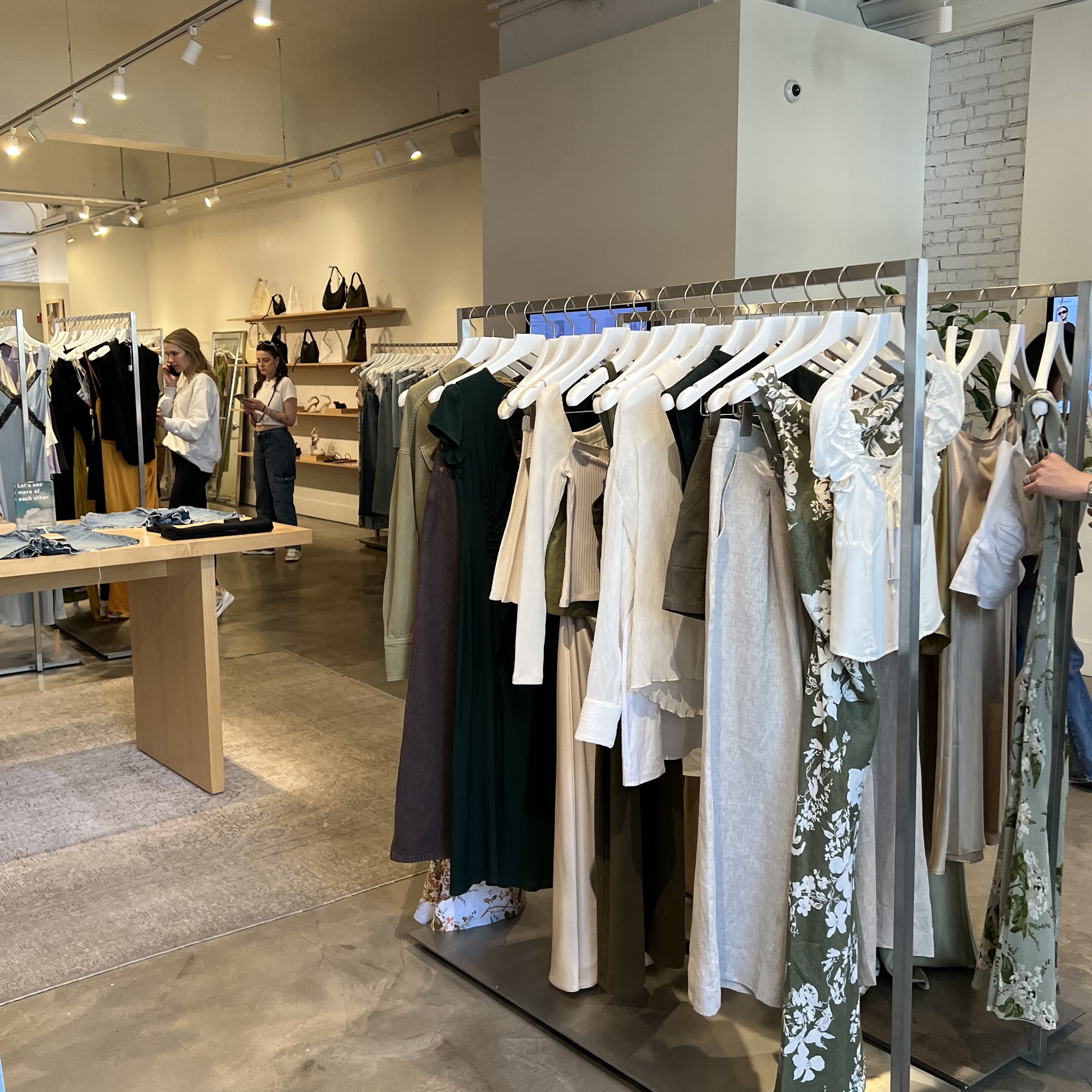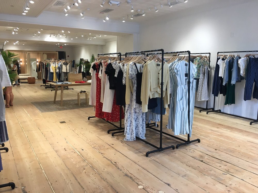 Reformation, a fashion retailer, provides a unique and convenient shopping experience for its customers. The store has implemented various health and safety measures, including requiring face masks, providing hand sanitizer, limiting store capacity, and offering contactless payment options. The store's innovative system allows customers to browse the available items on the floor, select the desired sizes using touchscreens, and have the items delivered directly to their fitting rooms. This process is described as easy to use and preferred by many customers, as it eliminates the need to search through all the clothes to find the right size. The staff at Reformation are consistently praised for their helpfulness and attentiveness. Customers have shared positive experiences, with one noting that the staff could not have been more helpful, and another highlighting the excellent assistance provided by a sales associate named Alex. Additionally, the store offers a vintage rack with unique, non-Reformation items that are equally appealing to customers. Overall, Reformation provides a pleasant and efficient shopping experience, with a focus on customer satisfaction and safety.
