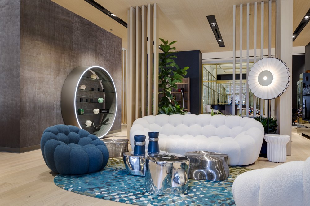 Roche Bobois is a world leader of high-end furniture design and distribution. Working closely with renowned designers and with Haute Couture fashion houses, Roche Bobois offers a broad range of exclusive made-to-order designs, manufactured with a high level of customisation in small European workshops. Our full collection of premium-quality furniture includes sofas, armchairs, cocktail tables, dining chairs, sideboards, beds, wardrobes, storage and accessories including lighting, cushions and rugs
