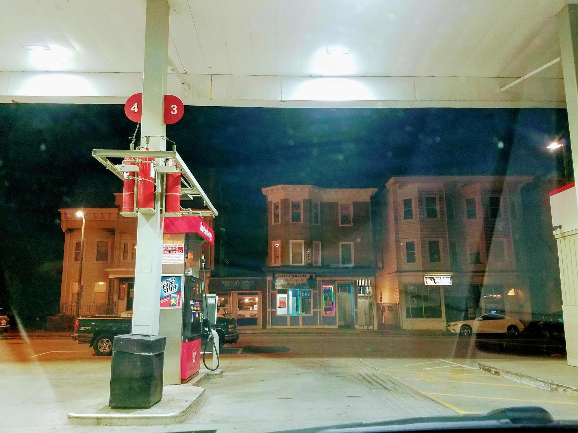 Speedway on Columbia Rd ext 14 off expressway in Dorchester MA 8pm Saturday evening. Busy location with 8 gasoline pumps accepts cash/debit/credit, open 24hrs, well lit on a corner with direct access to expressway. Litter free