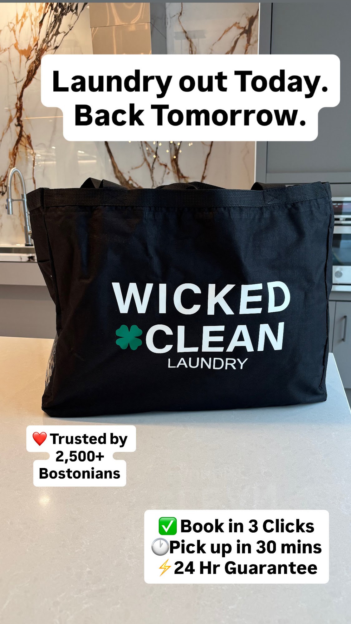 Boston’s #1-Rated Laundry Service for wash & fold, delivering clothes that are always fresh, perfectly clean, and neatly folded. We guarantee a 24-hour turnaround for ultimate convenience in the Greater Boston area. From everyday loads to delicate wool and knit sweaters, our expert team uses gentle, eco-friendly methods to ensure every garment gets the VIP treatment—no tight balls or shrinking, just perfection. Choose hassle-free door-to-door pickup and delivery with immediate, responsive customer service. Get back your time. Get Wicked Clean.