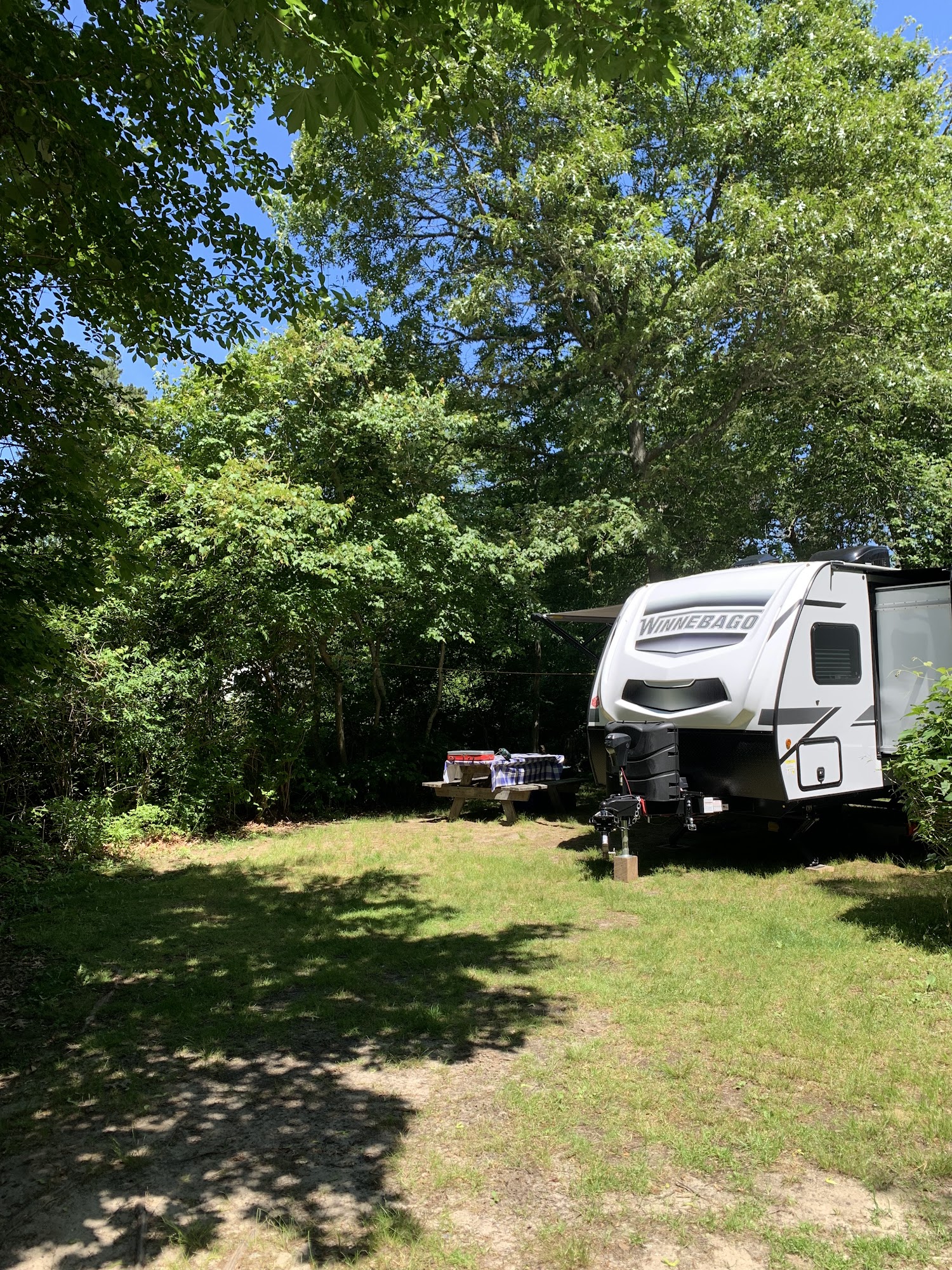 Shady Knoll Campground is a cozy and well-maintained place close to beaches, parks, and biking trails. The sites are mostly wooded, providing shade and privacy, though they may be small and not ideal for large RVs. Visitors appreciate the friendly staff, clean restrooms and showers, and good laundry facilities. The campground offers full hookups and quiet surroundings, making it a peaceful spot for relaxation. It is conveniently located near walking trails, a rail trail for biking, and a nearby grocery store. Many guests enjoy walking to restaurants and beaches just a mile away. The staff is professional and attentive, and the grounds are kept in good condition. Overall, Shady Knoll Campground provides a lovely, quiet experience with easy access to outdoor activities, making it a popular choice for those seeking a simple and pleasant outdoor stay.