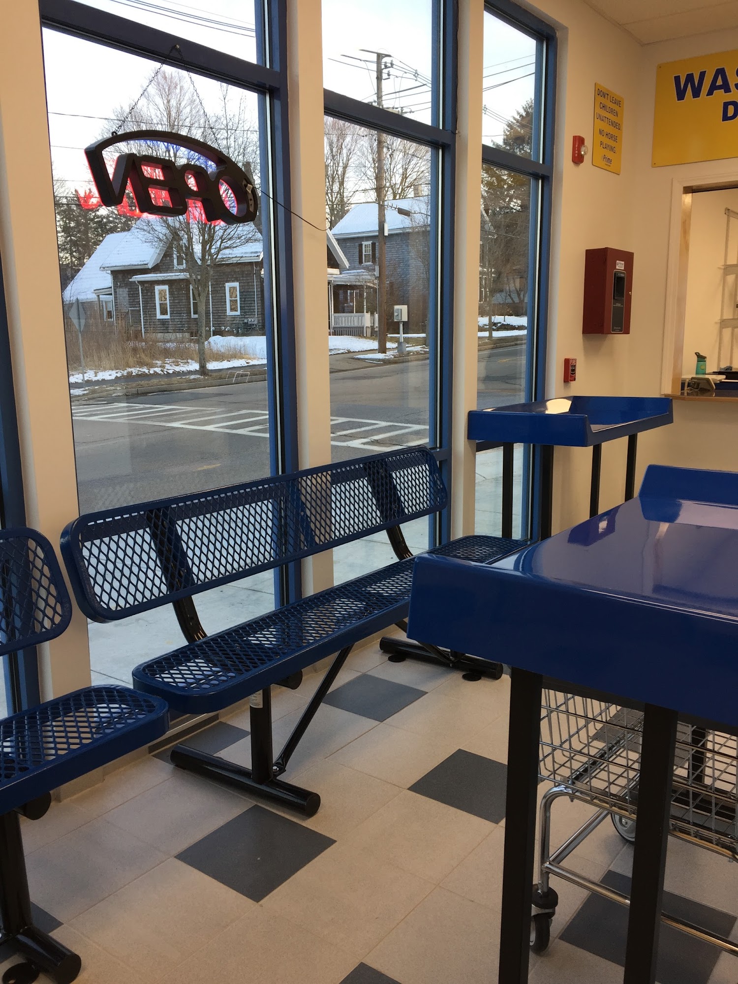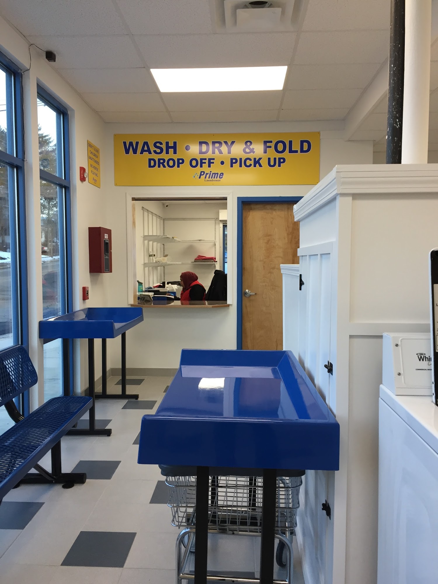 Has the largest washing machine I’ve ever scene. It is $8.00 to use, It fits 2 king size comforters in as well as towels and jackets. I recommend this laundry mat.