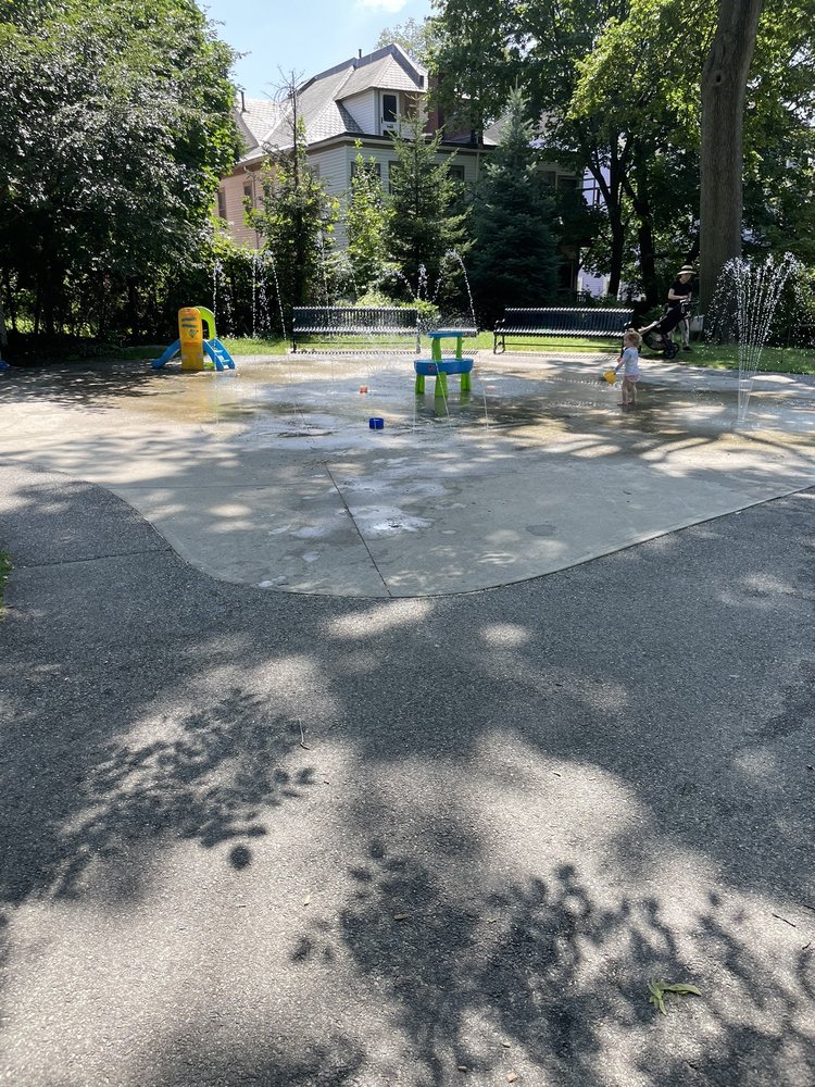 Great playground with options for younger and older.kids and a splash pads. Pic nic tables available as well as a sand pit.