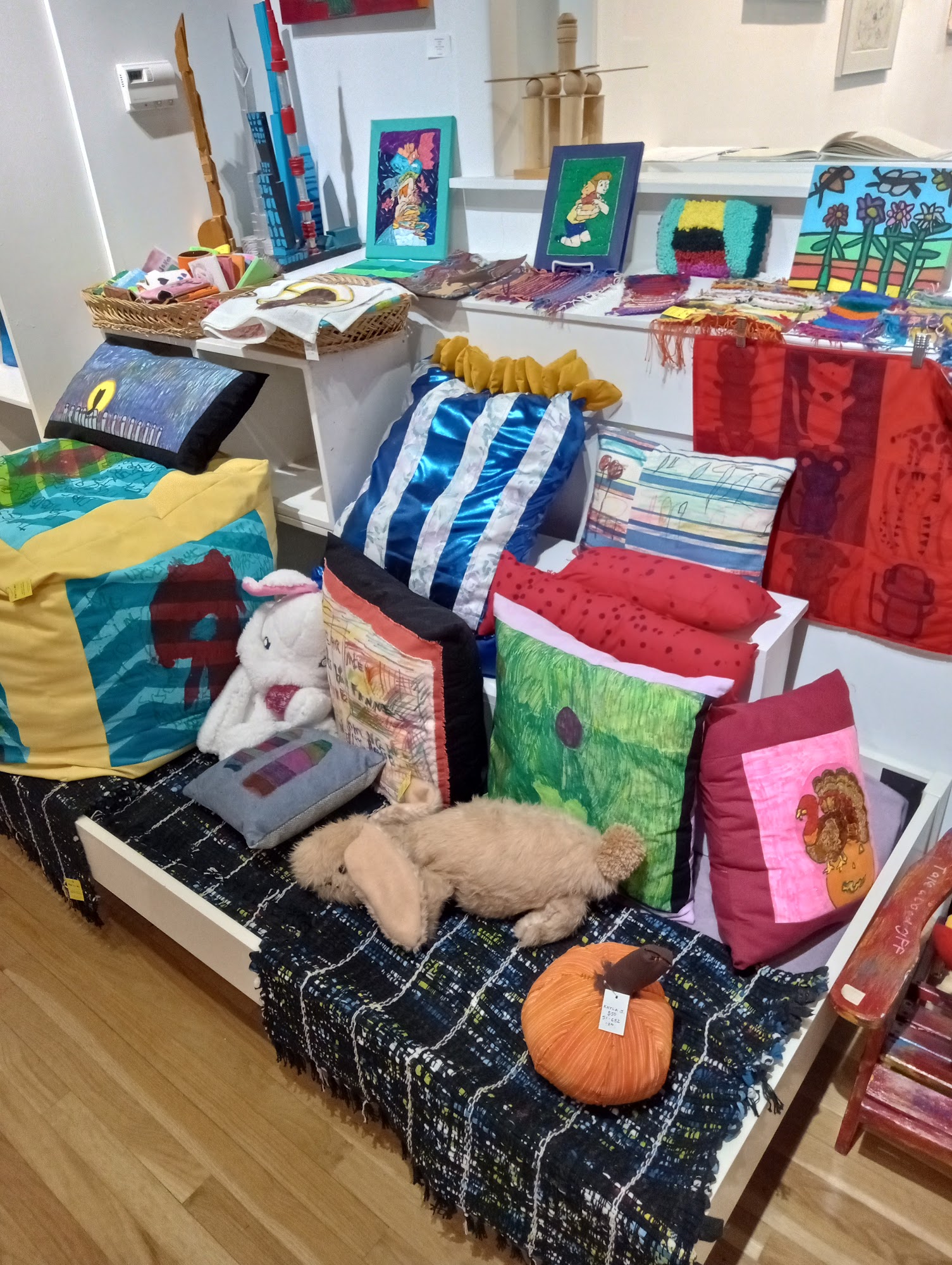 Gateway Arts is a nonprofit studio art center providing individual arts based services to support the careers of over 100 adult artists with disabilities. Artists create work in diverse mediums including fiber arts, ceramics, drawing, painting, mixed media, new media, and jewelry, with the support of a professional staff of artists. Gateway artists are represented in the onsite Gateway Gallery and external venues, and sell their work in The Gateway Store, located at 60 Harvard Street in Brookline Village, MA. The industry standard 50% of proceeds from the sale of original work is paid to the artist as commission, the other 50% is used to continue providing professional art supplies, studios, and highly trained staff.