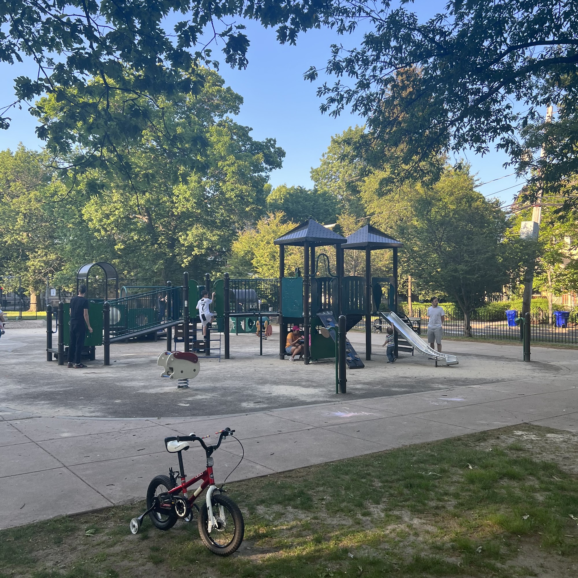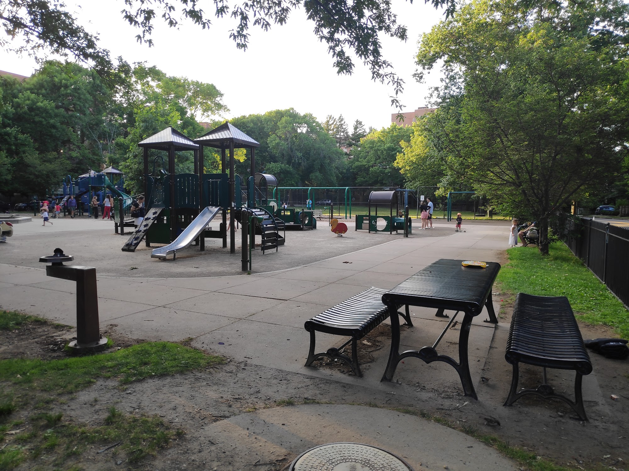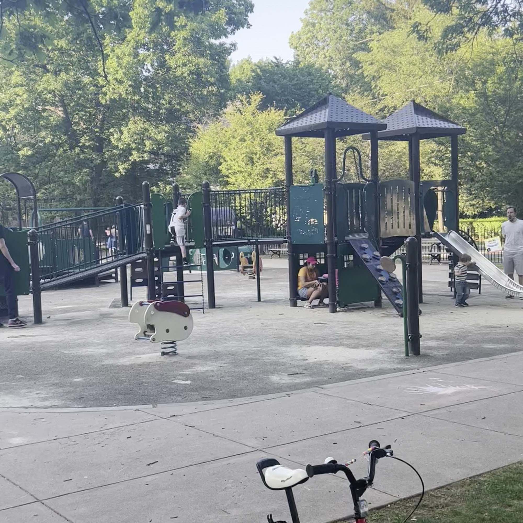 Very interesting children playing around very beautiful and well kept area.