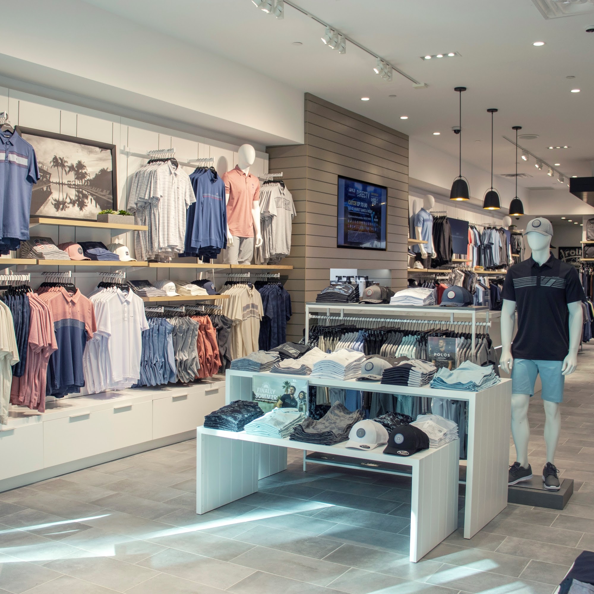 Based on the reviews, TravisMathew offers stylish athletic wear that is strong and flexible, making customers look good doing day to day activities. The store is fun, tasteful, and has a set up that makes people want to hang around longer. They have nice golf clothing, though a little bit pricey as expected in a mall. The customer service is the best ever, with a free arcade, ping pong, sports TVs everywhere, and complimentary candy and refreshments. The staff is kind and helpful.