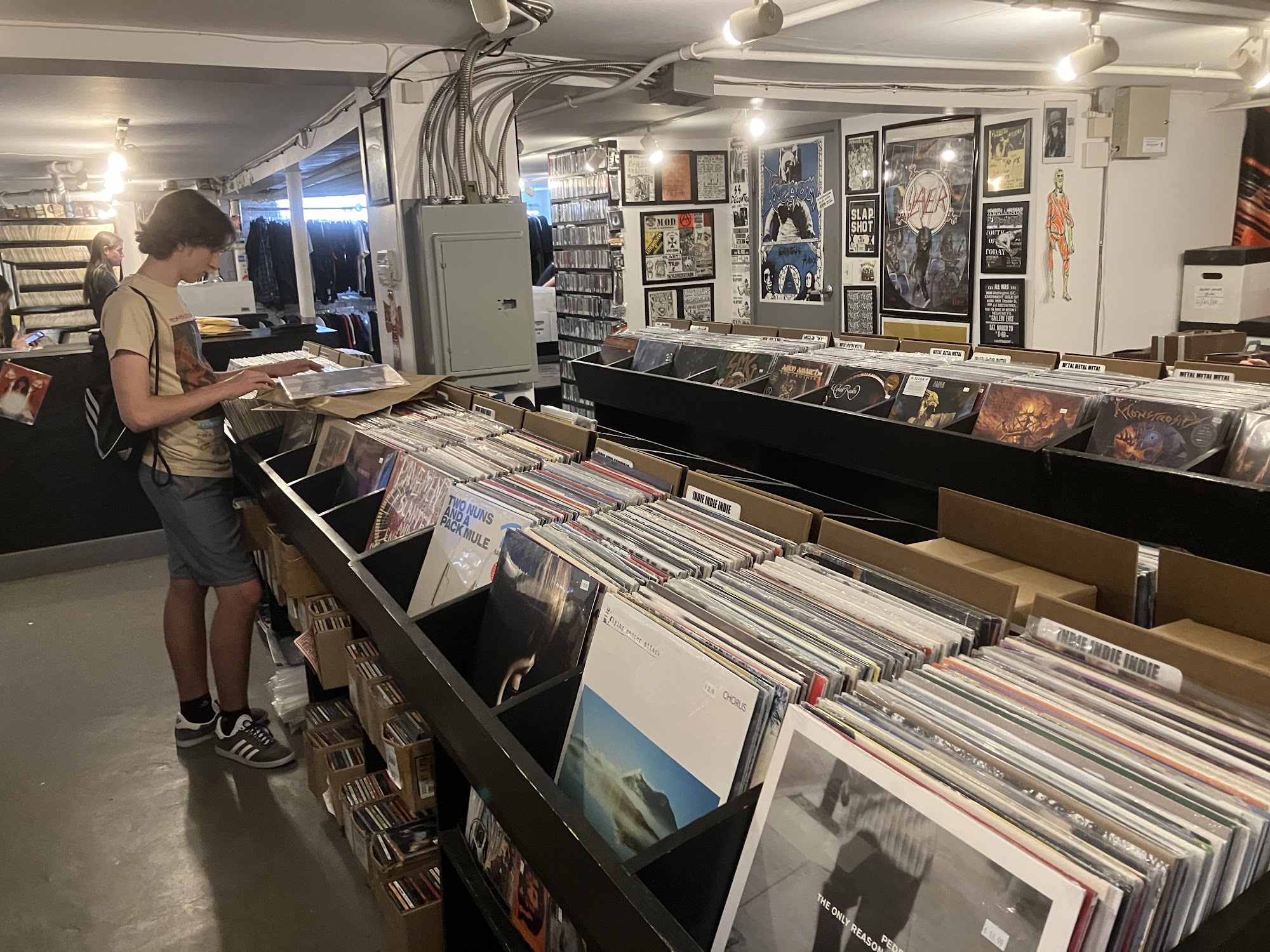 Armageddon Shop is a punk rock and hardcore haven for vinyl and CDs. It is a great store and literally a favorite record shop, known for its rad and amazing selection. The collection switches out frequently, leading to some wild finds at retail price or lower. The staff are awesome, super knowledgeable, friendly, and chill dudes. The vibe is nice and cool, with a very cool location. Customers appreciate the ability to reserve items and pick them up, and many state they will definitely come back every time they are in the area. It is the coolest shop for people with musical tastes off the beaten trail.