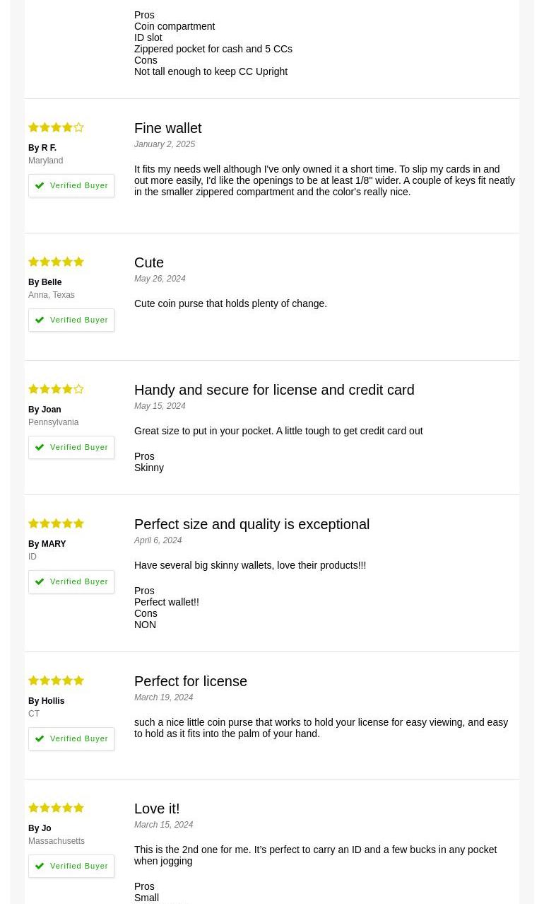 I am on my third wallet with Big Skinny. They are the best wallets. Good quality and so thin in pockets. Also very honest company, as had a billing mixup and they fixed it so quickly. Strongly recommend.