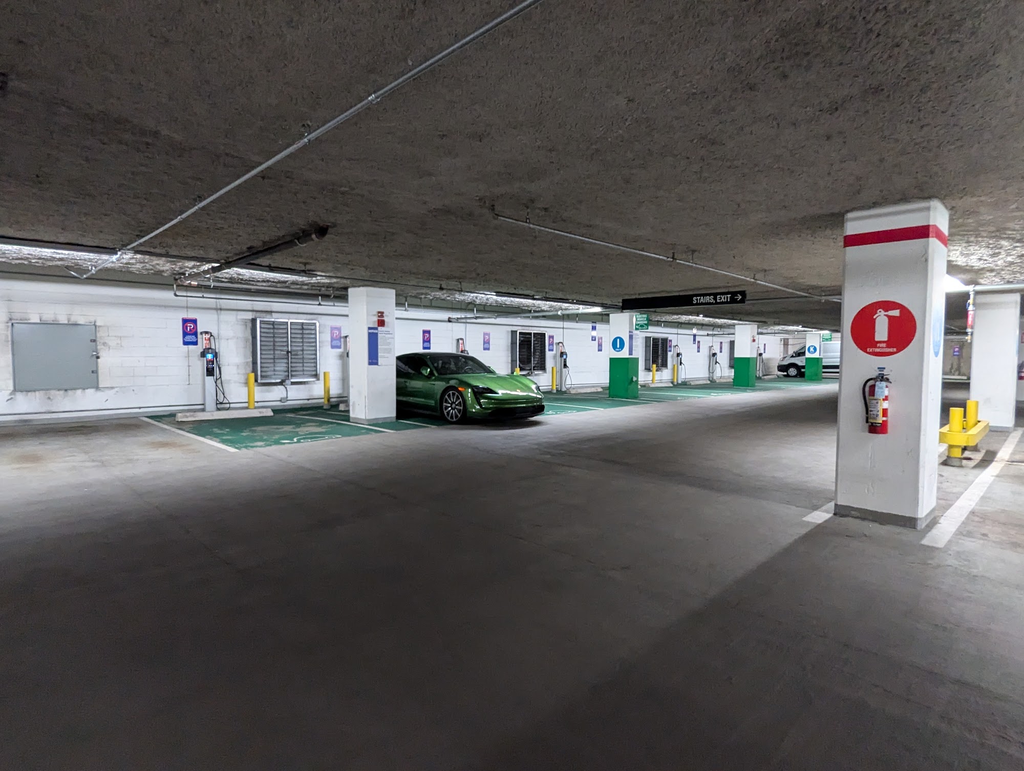 How to find the charger: Below ground in parking garage level 1 along the back wall.