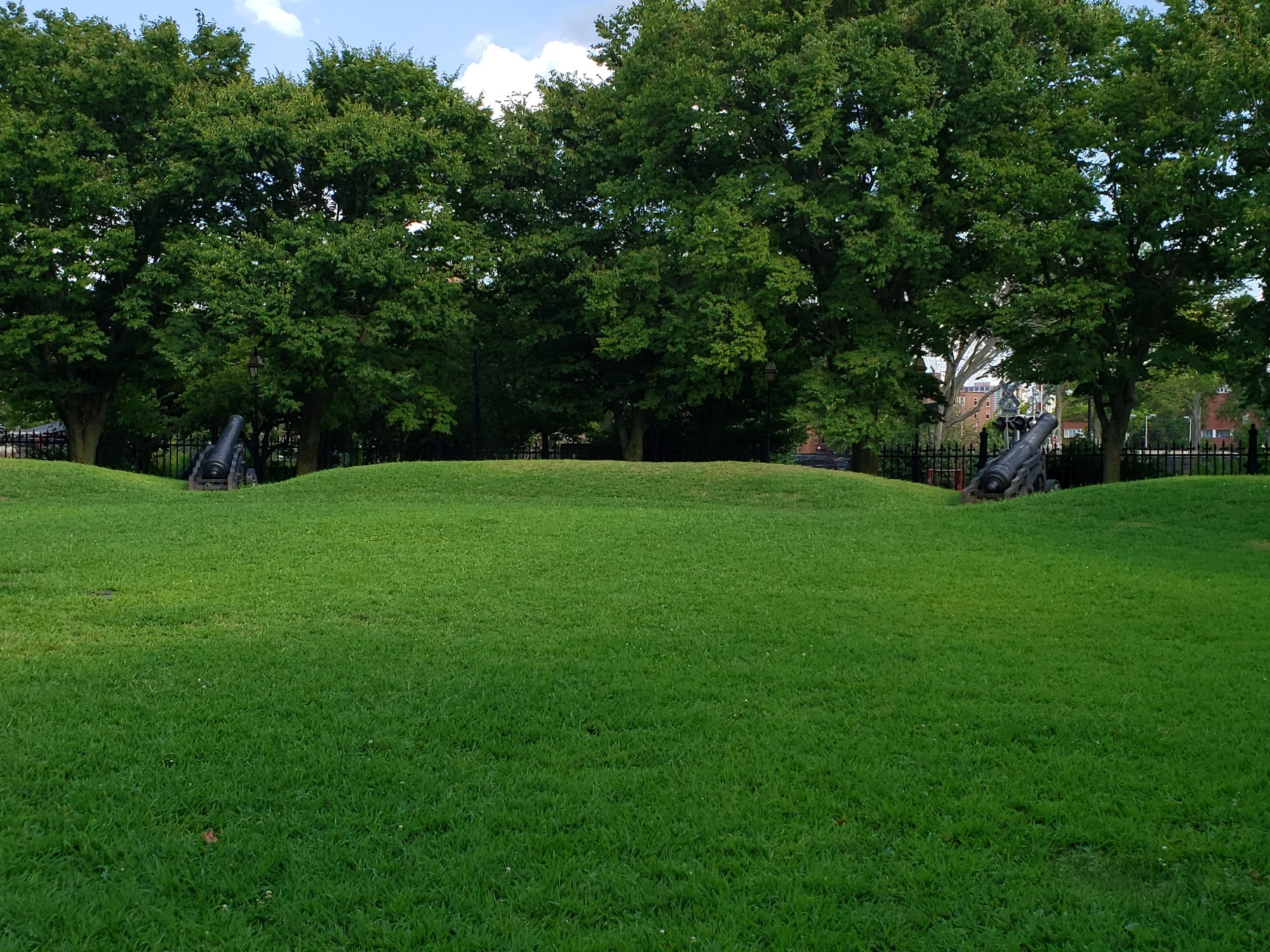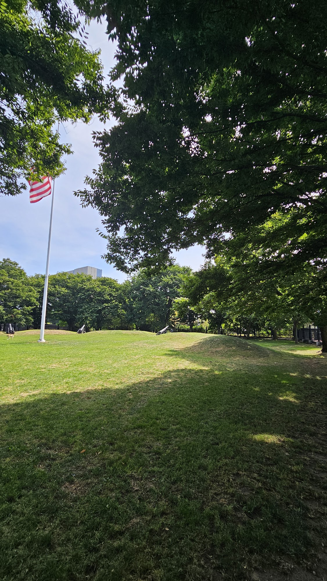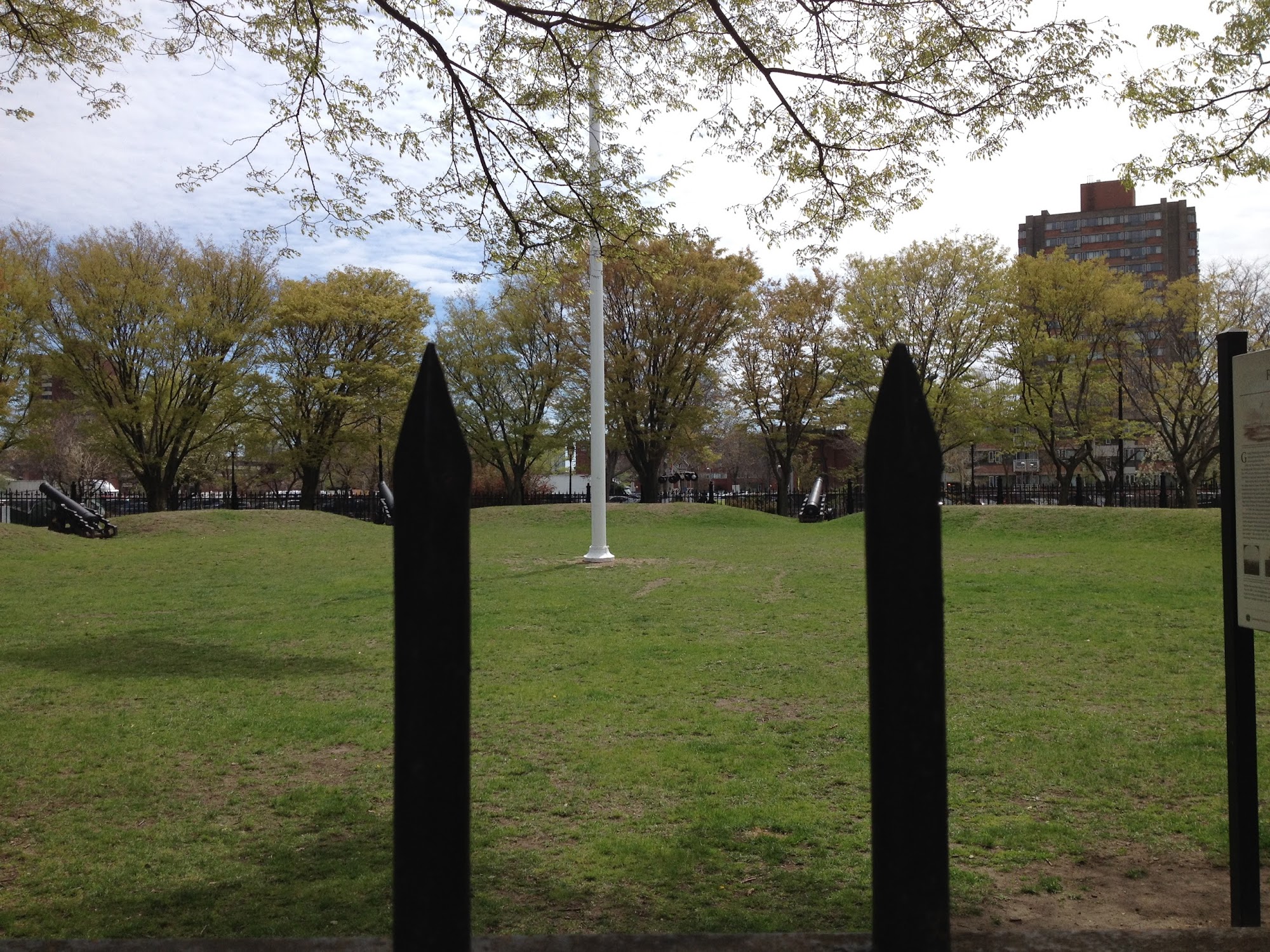Cool little place of history. Love the fence posts made out of old cannons. A lot of people bring their dogs here.
