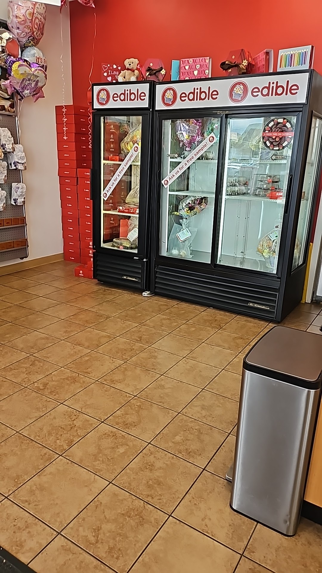 I walked by and saw a free sample it is delicious Strawberry ? Chocolate. Highly recommend Debby the associate was fantastic. Keep up the great work different varieties to choose from as well.