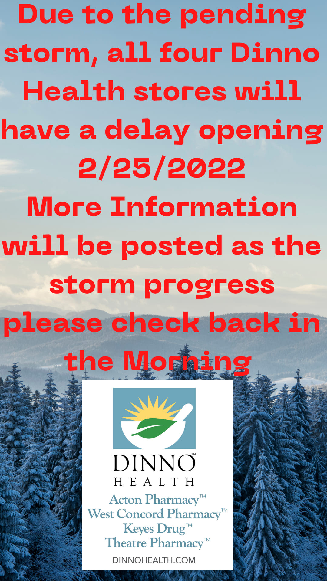 Friendly and knowledgeable staff. Great location. Large inventory of devices for physical ailments. Pharmacists are excellent! As a not very satisfied CVS customer, I am extremely happy that I switched to the West Concord Pharmacy.