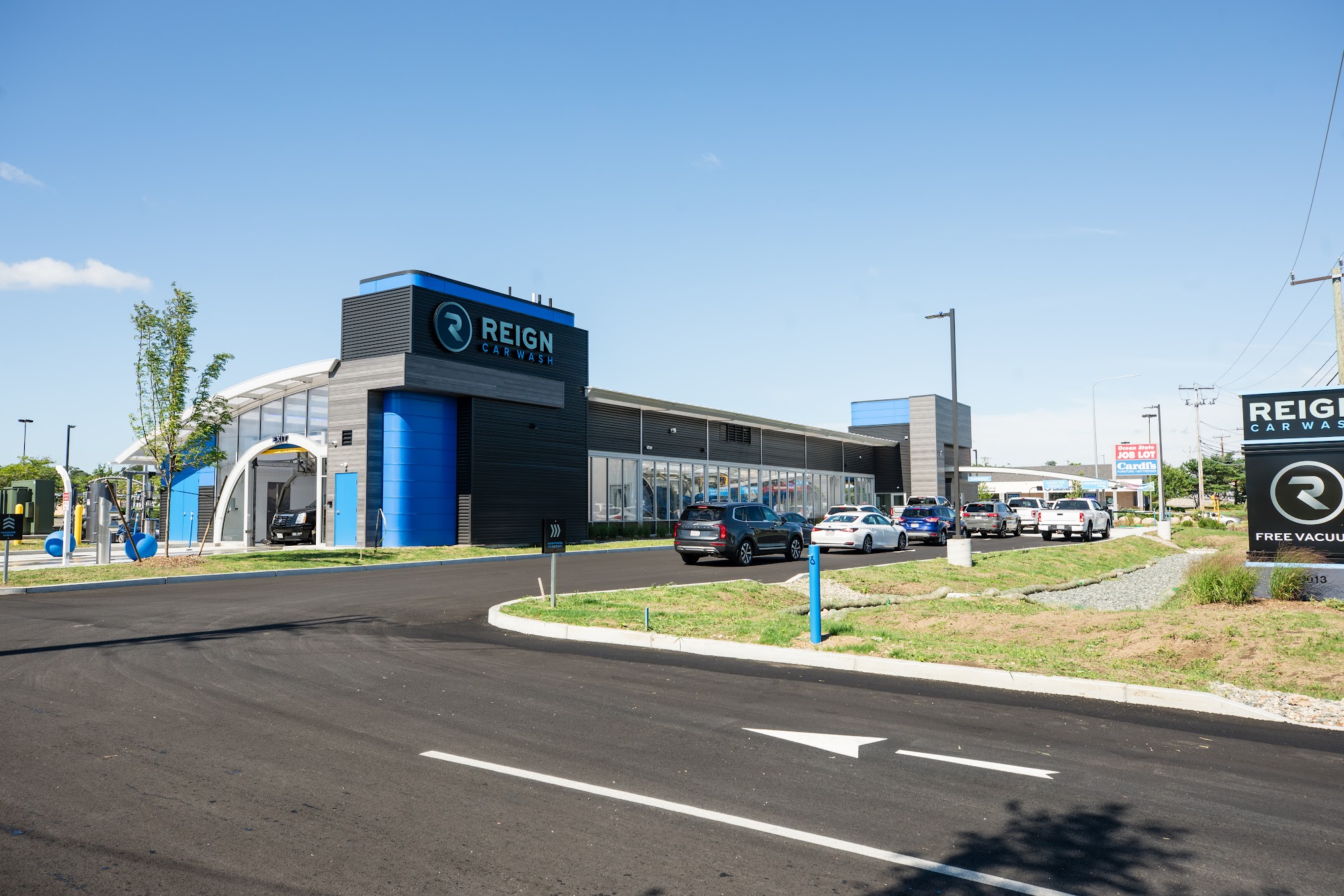 Reign Car Wash is a fresh, new, and excellent place. It is easily the best car wash, providing an impressive and spotless clean with generous suds and tire shine. The process is fast, efficient, and reasonably priced. A major highlight is the free vacuums, which are actually free for everyone. There are plenty of vacuum bays with strong suction, including types for wide and narrow spaces. The business is busy and has wonderful workers. Many customers highly recommend it and plan to return.