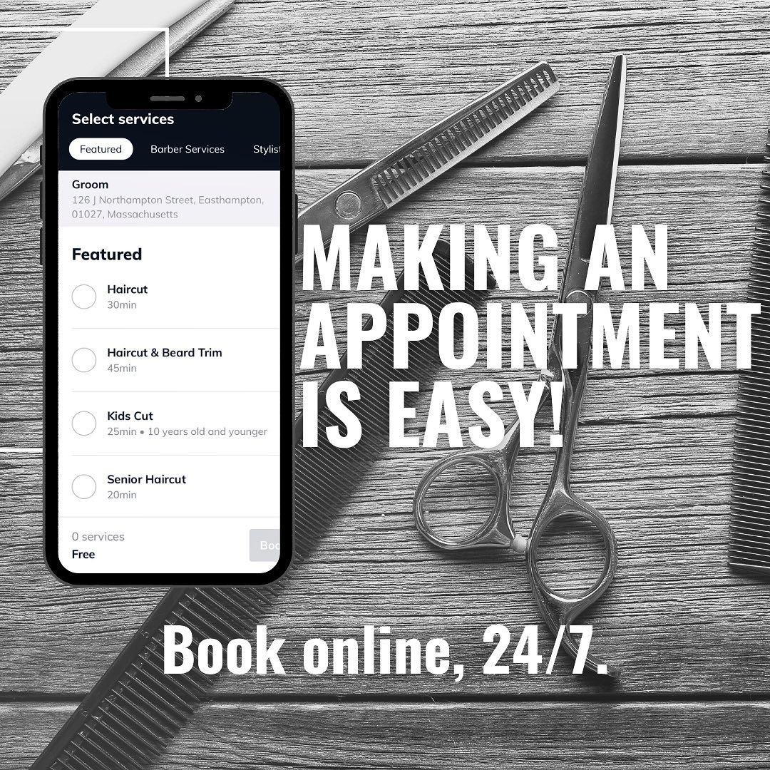 Welcome to GROOM Barbershop, your premier destination for grooming services in the heart of Easthampton. Our commitment to excellence is unrivaled, as we offer top-notch haircuts, professional beard trims, luxurious hot towel shaves, and much more – all tailored to suit the unique preferences of our diverse clientele. Our experienced and skilled barbers ensure that you leave GROOM feeling refreshed and confident. Step into our modern, comfortable atmosphere and experience the ultimate blend of tradition and innovation in barber services – where a timeless craft meets a contemporary approach to grooming.