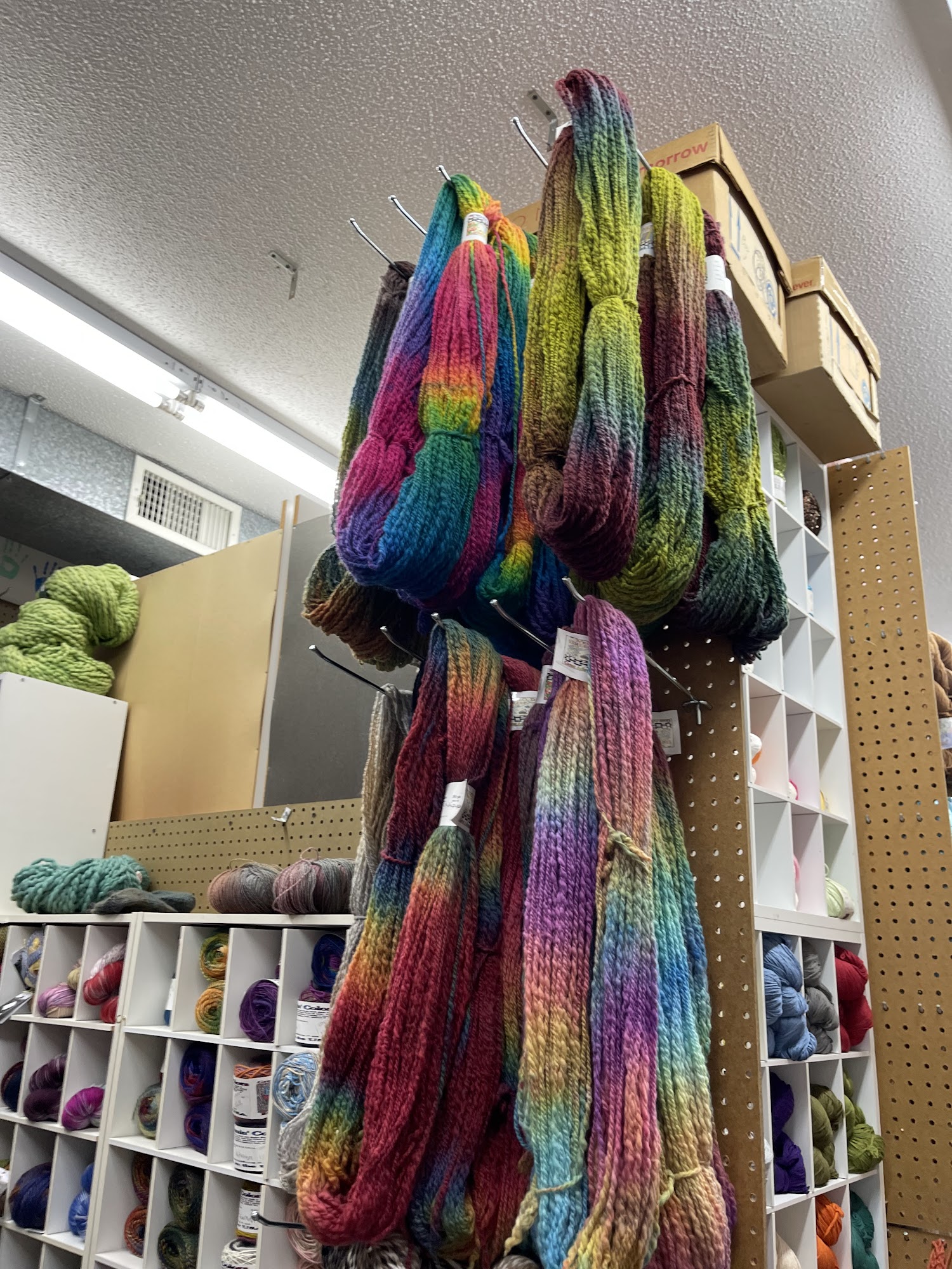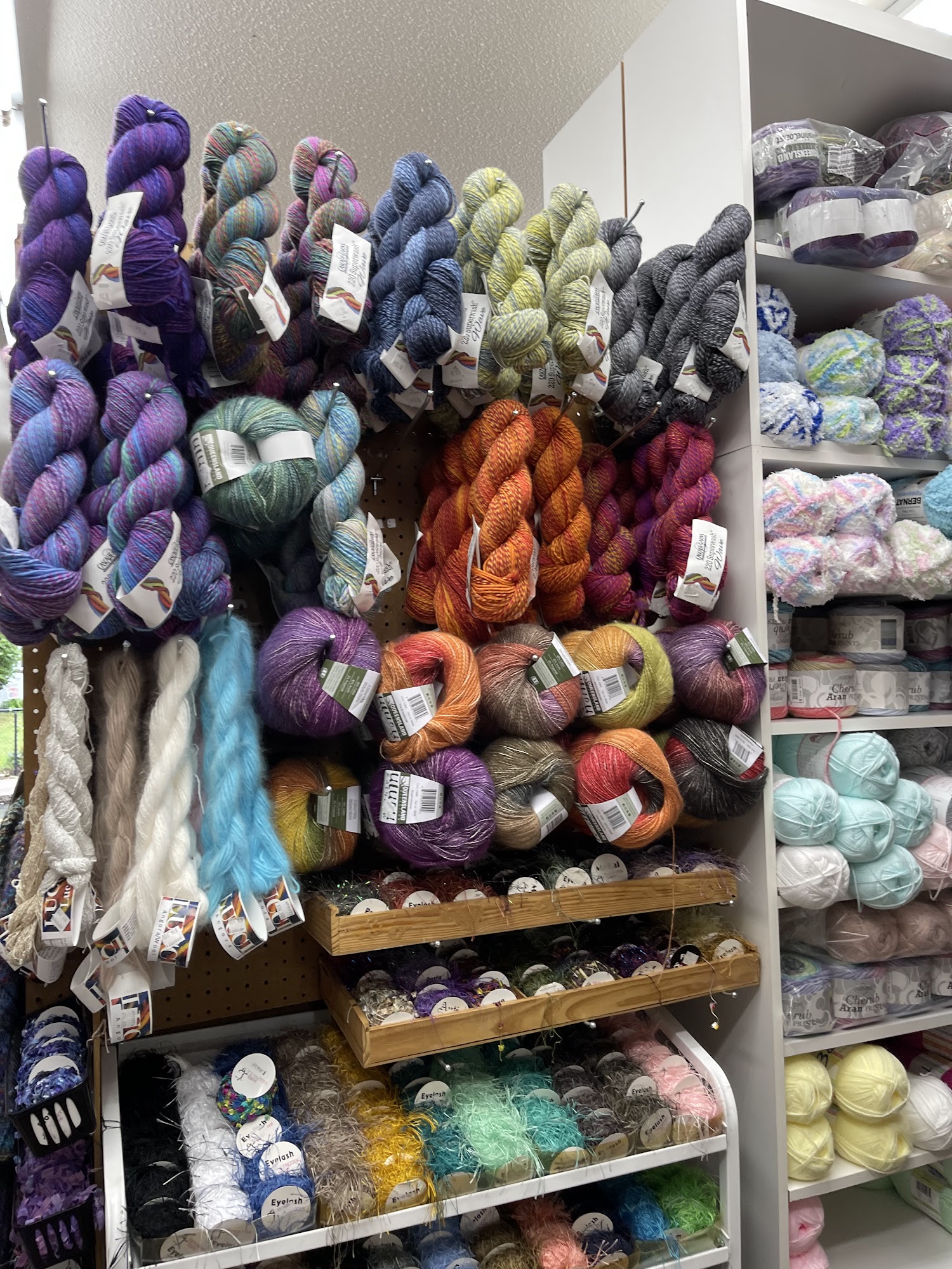 K G Krafts is a fantastic and amazing craft store with a really amazing selection of harder to find yarns and materials. It offers a wide selection of small-batch hand dyed yarns, wool blends, cotton, bamboo, acrylic, ombré, glittery, and textured yarns, plus tools like afghan crochet hooks. The owner is extremely talented, knowledgeable, very helpful, pleasant, and dedicated to crafting. Prices are reasonable. There is so much to look at and stuff to inspire, making it a great place to shop that you need to check out.