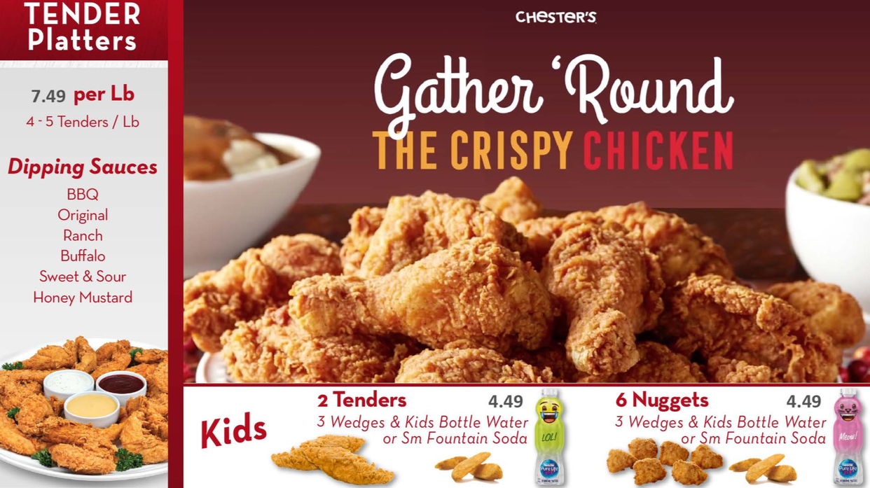 Chester’s Chicken in Pride is a leading quick-service restaurant (QSR) concept, with over 1,300 active franchised and licensed locations and over 50 years of proven success. Chester’s offers high quality, great-tasting fried chicken in convenience stores, truck stops and supermarkets. Chester’s specially marinated chicken is double breaded using an old family recipe. Chester’s menu includes bone-in chicken, super tenders, bites, sandwiches and potato wedges as well as home-style sides, dipping sauces and desserts.