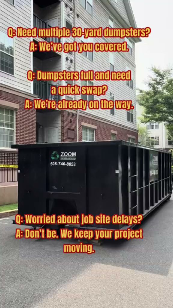 Zoom Disposal Services, established in 2017, offers exceptional dumpster rental services catering to contractors, homeowners, and landscapers in Framingham. With a wide range of dumpster sizes, from 10-yard to 30-yard, they cater to both small-scale and extensive waste management needs. Zoom Disposal's professional and friendly staff ensure personalized assistance and prompt service, earning them the trust and loyalty of their clients. Customers praise the company's immediate response, easy communication, and overall excellent experience, making Zoom Disposal Services the go-to choice for their disposal needs.