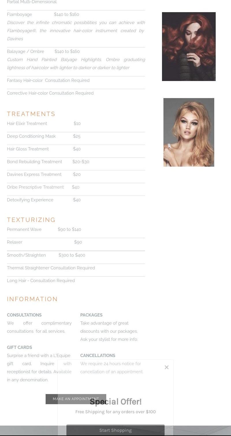L'Equipe Personalized Hairdressing is a recently renovated salon that offers a comfortable and friendly atmosphere for clients. The salon provides complimentary coffee, cappuccino, or tea while customers enjoy personalized hair styling services. The staff is welcoming, knowledgeable, and dedicated to customer satisfaction, making clients feel at home from the moment they walk in. Clients have praised the salon’s cleanliness and reasonable prices, although some mention that certain items like jewelry and hair products can be overpriced. L'Equipe specializes in haircuts for both men and women and has been serving the community for over ten years. The stylists are skilled at cutting short hair and creating beautiful styles with attention to detail. Customers have shared that the stylists work with their long-term goals and make careful suggestions, ensuring their hair looks good even weeks after the appointment. Many clients find the team helpful, professional, and up-to-date with the latest trends and techniques. The salon is conveniently located in a large shopping center and attracts clients from nearby towns and cities. Overall, the atmosphere, staff expertise, and personalized service make L'Equipe a trusted choice for quality haircare.
