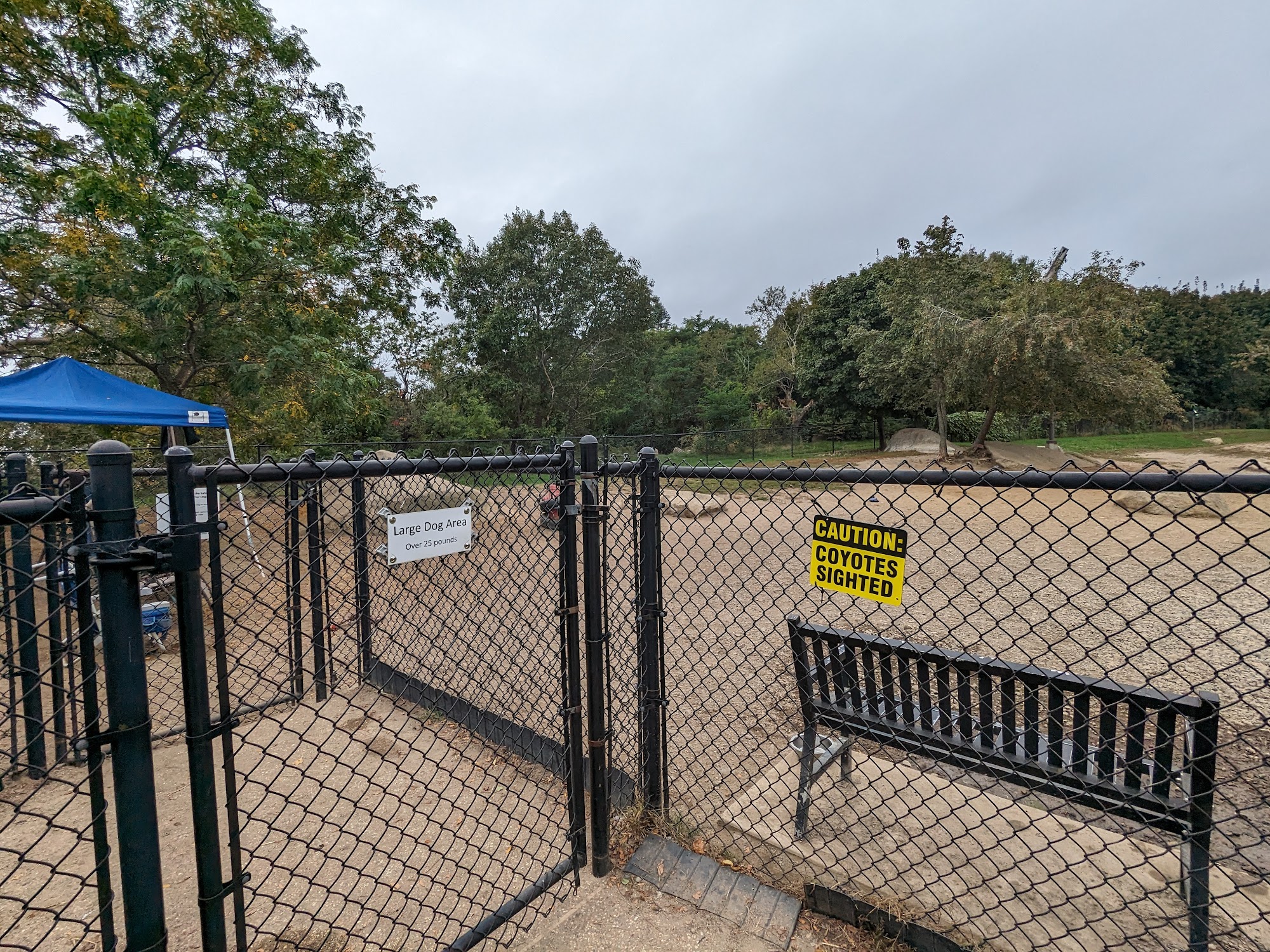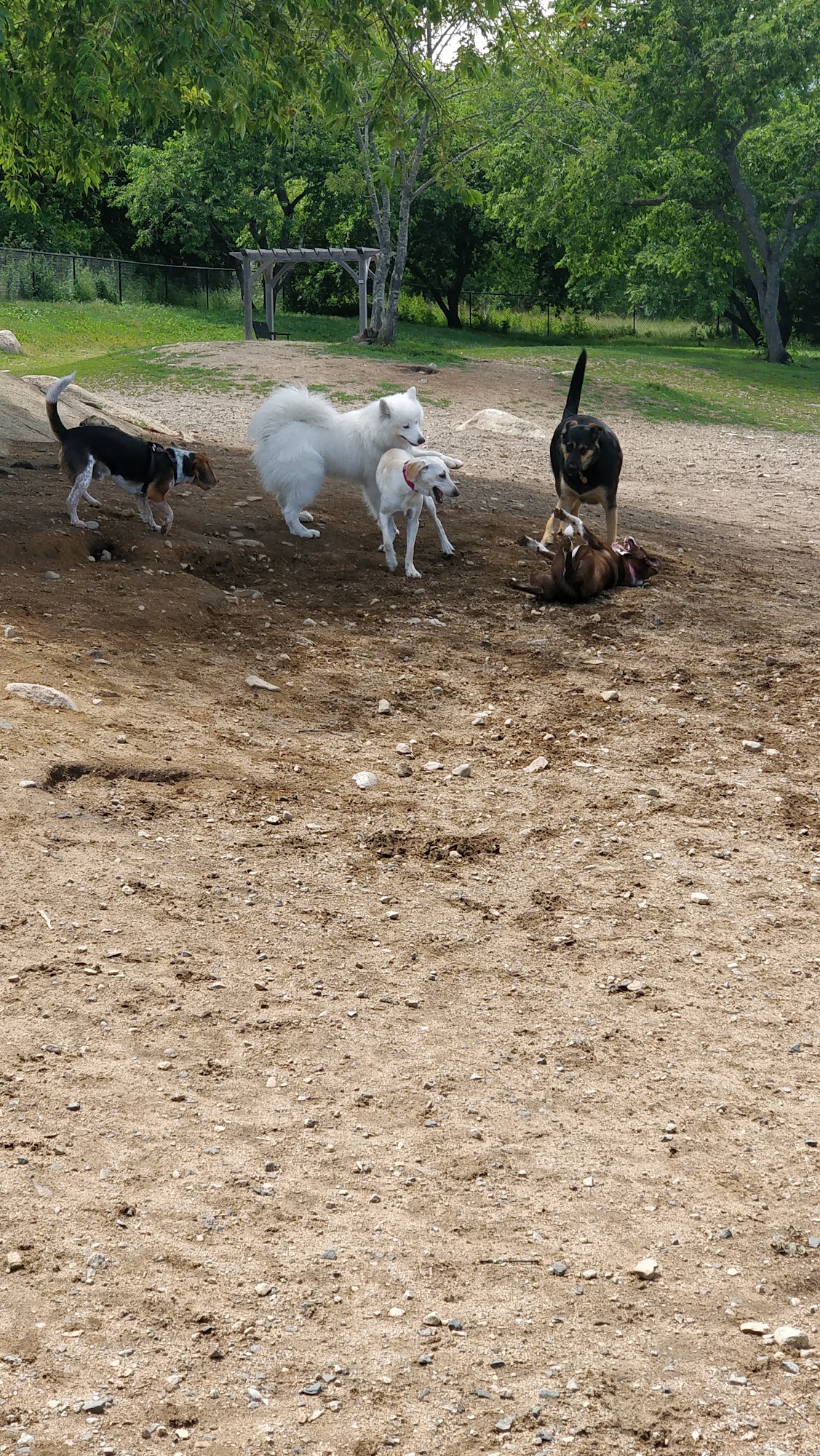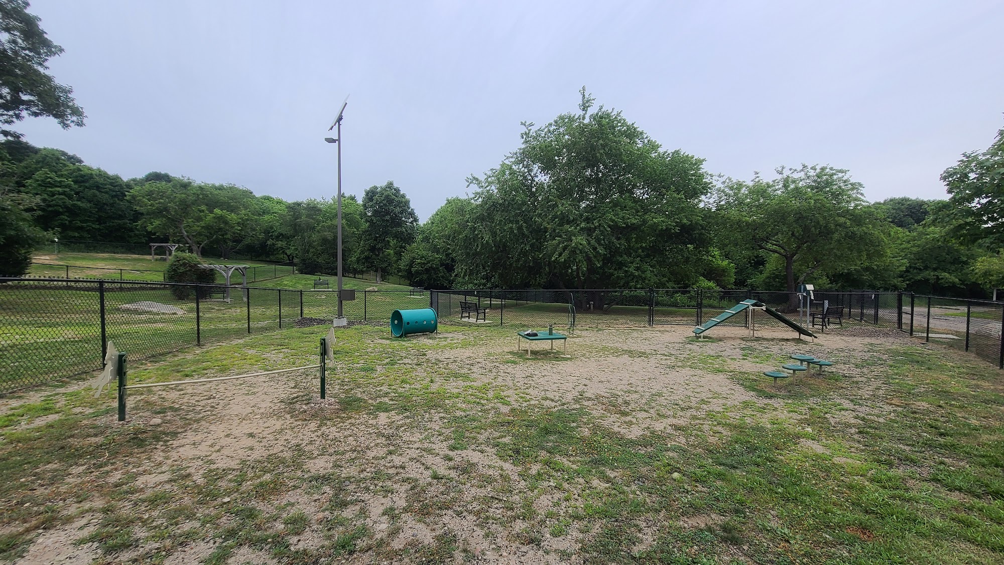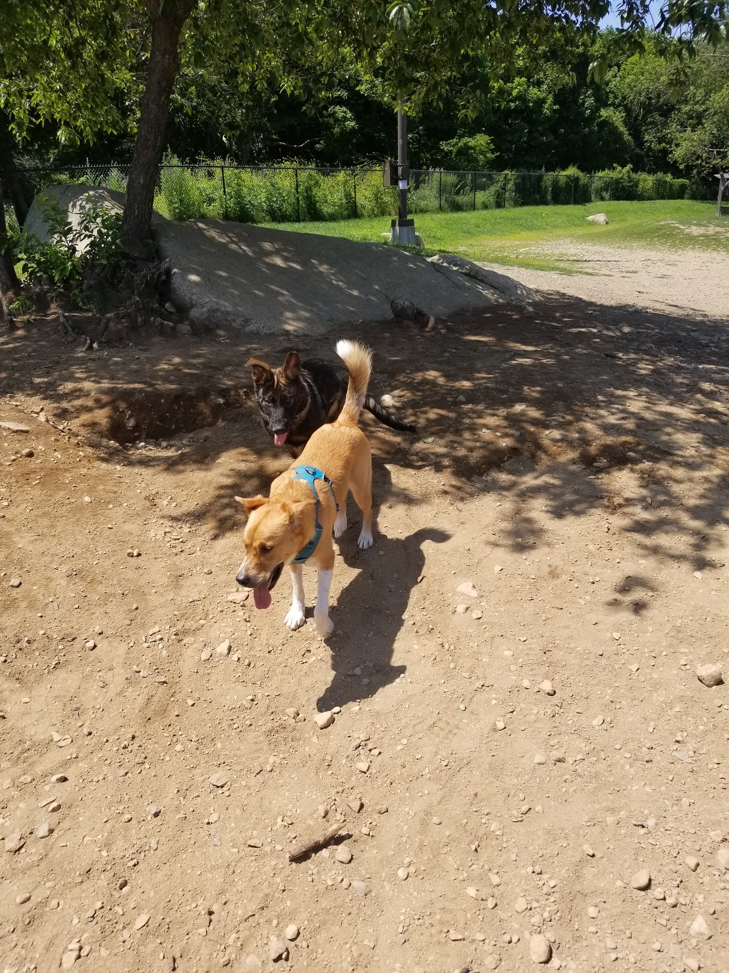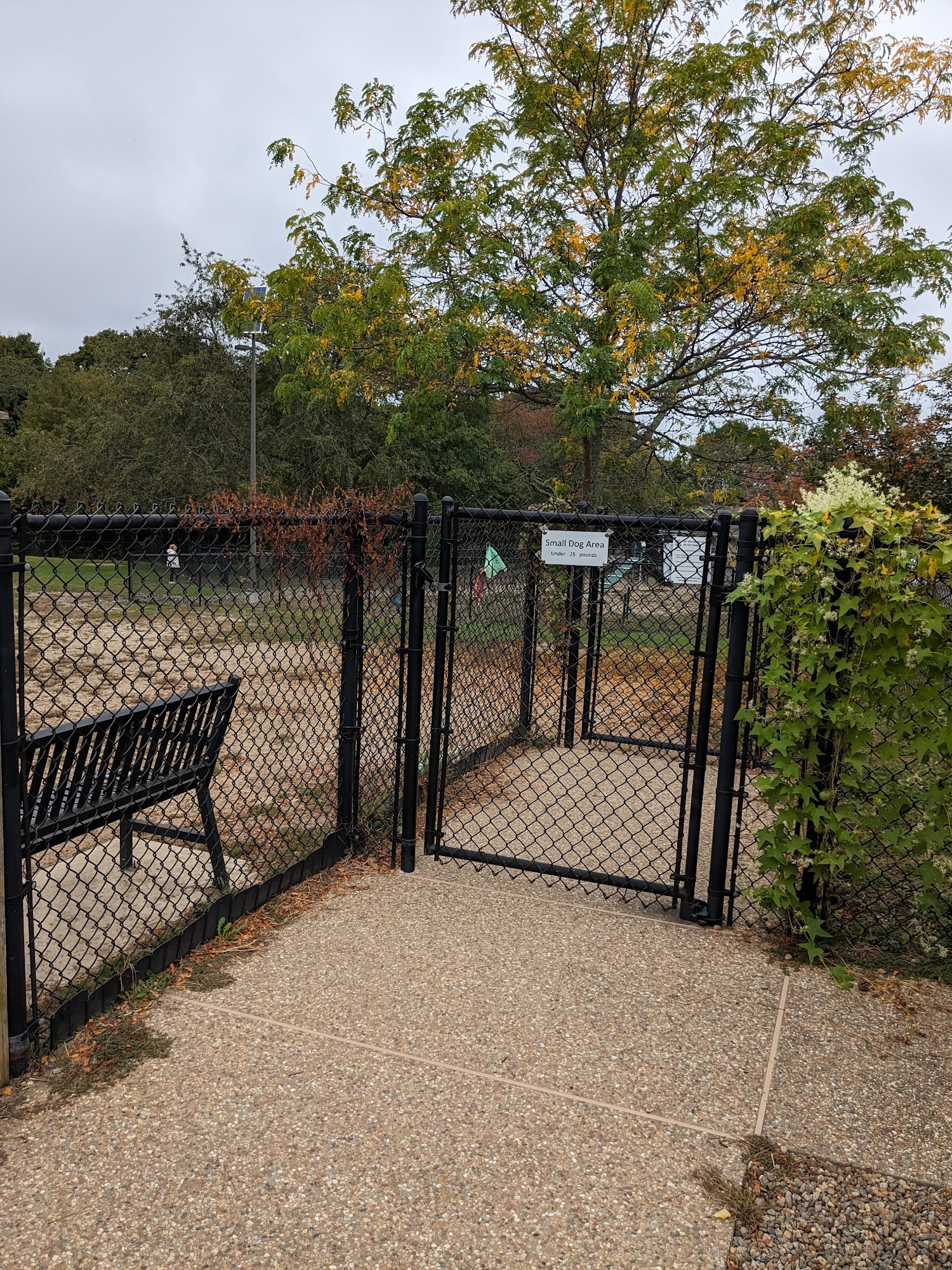 It's a nice dog park with an area for large dogs a separate area for small dogs and even a separate area for somewhat aggressive dogs.