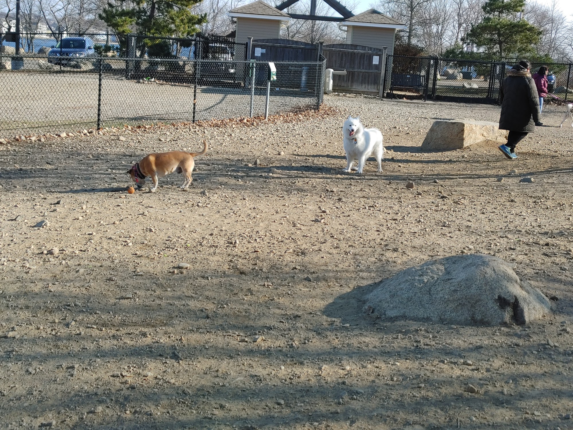 Plenty of space for the dogs of all sizes to run around, great people, all of the amenities (poop bags, water fountain, things to chew on.) Our dog loves the wide open space to run around.