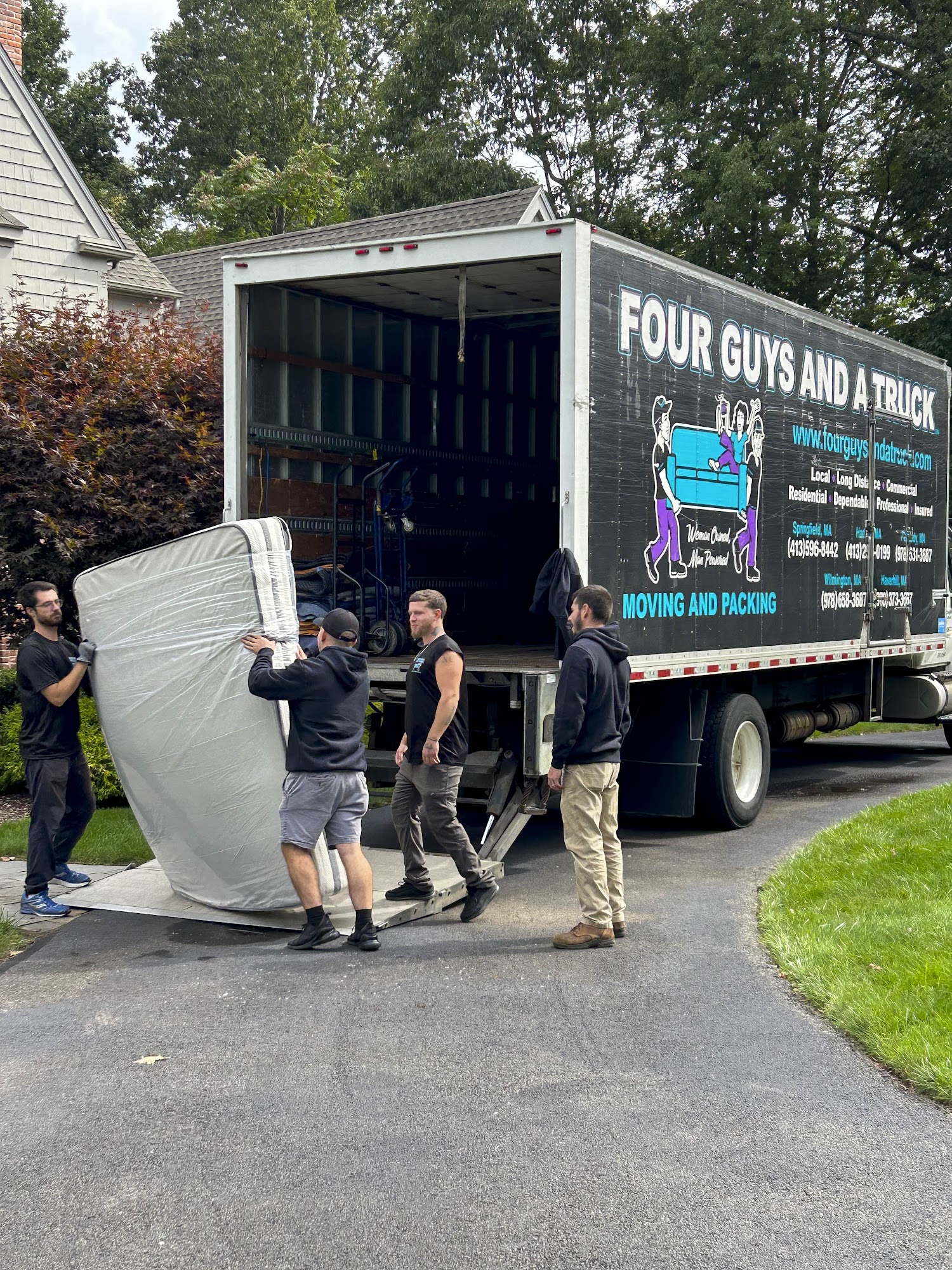 Whether it's across the street or across town, you can count on the professional movers at Four Guys and a Truck™ moving company. We're here to handle every aspect of your relocation, from the packing process to unloading your belongings. With two convenient locations in Amherst and Wilbraham, Massachusetts, we have built a reputation throughout New England and the 5-College Area as a moving company you can trust. We are known for providing quality services at affordable prices. Just sit back, relax, and let our four guys do all the work!