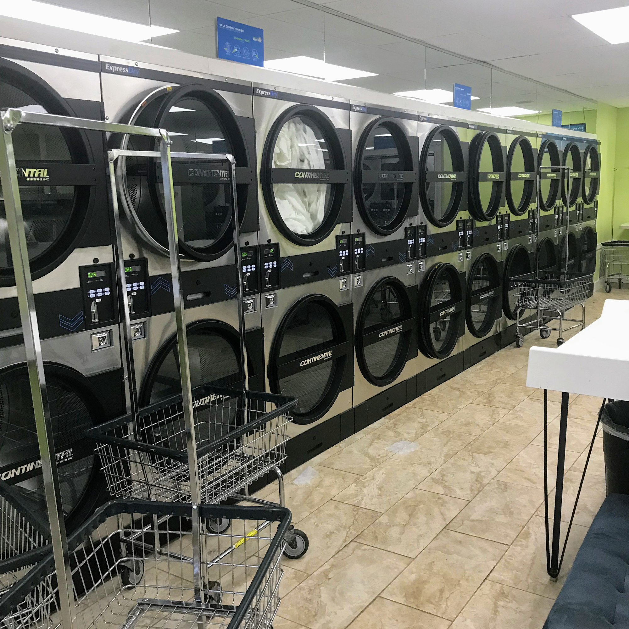 Sunshine Express Laundry Center features brand new washers and dryers, including the largest washer in the area and multiple large dryers. The laundromat is clean, well-lit, and well-maintained, with extended hours for customer convenience. While the machines are quick and efficient, some customers have noted that they still require quarters and no change machine is available. Despite some issues on Monday mornings with trash and paper products, the laundromat is generally clean and tidy, making it one of the best in the area.