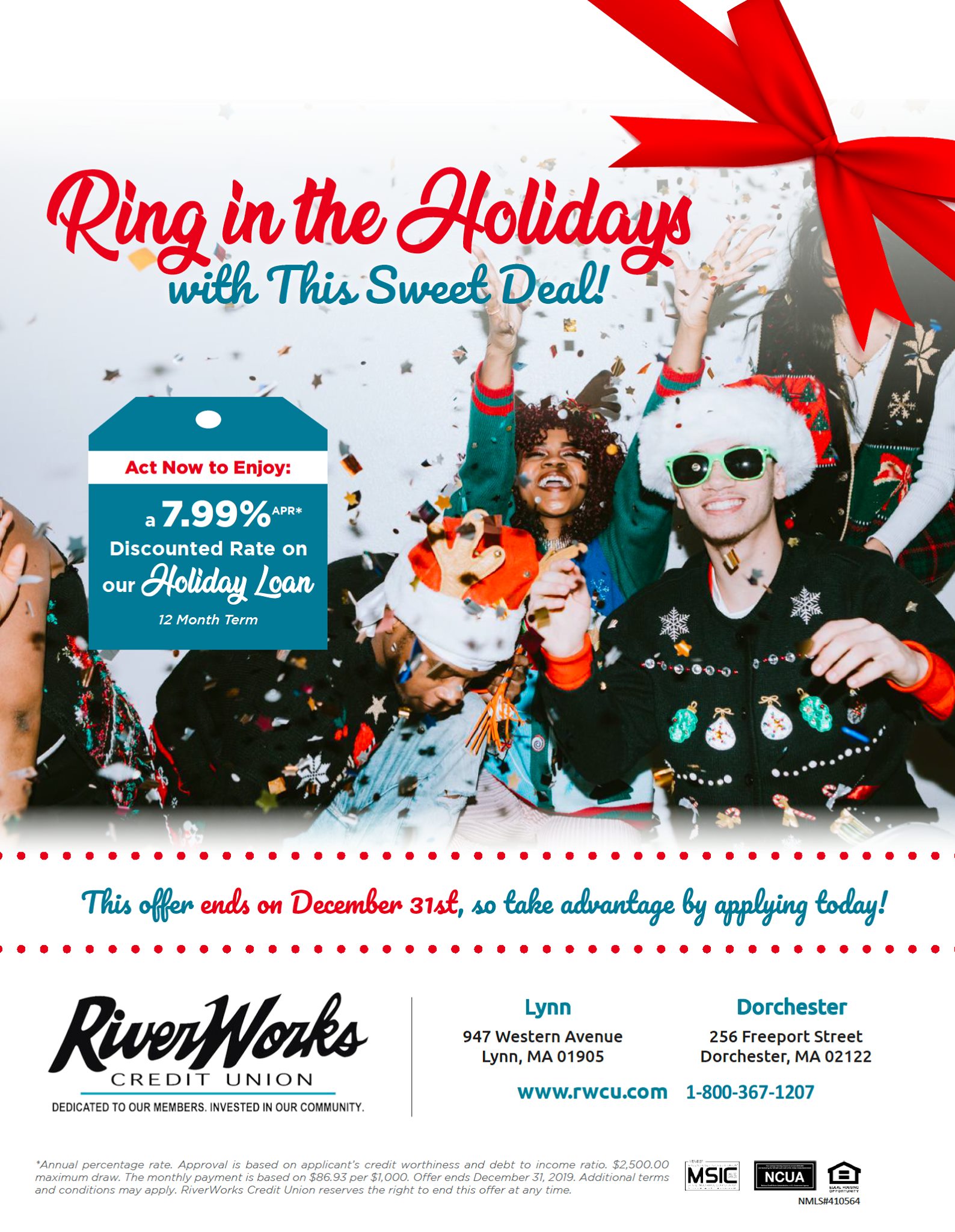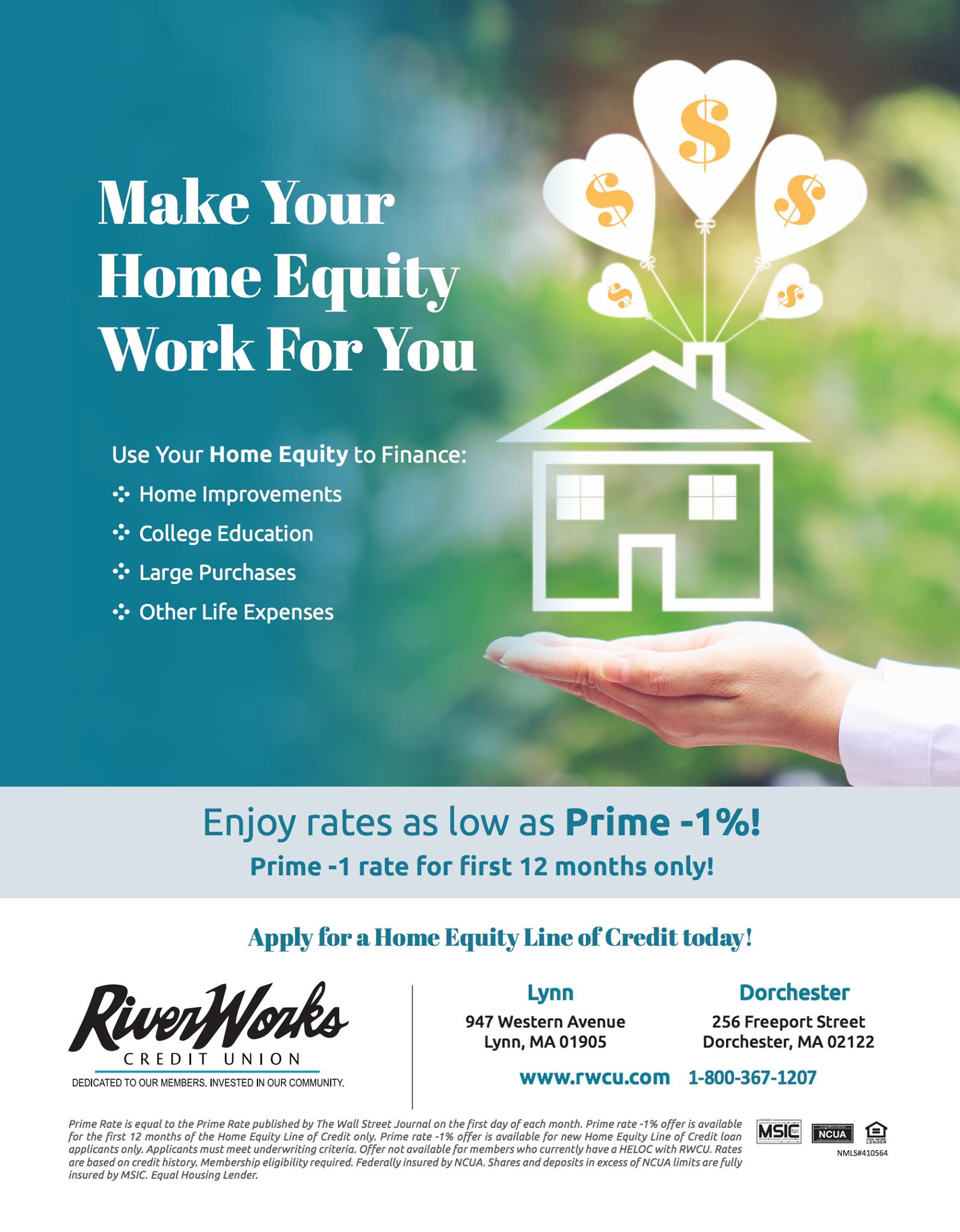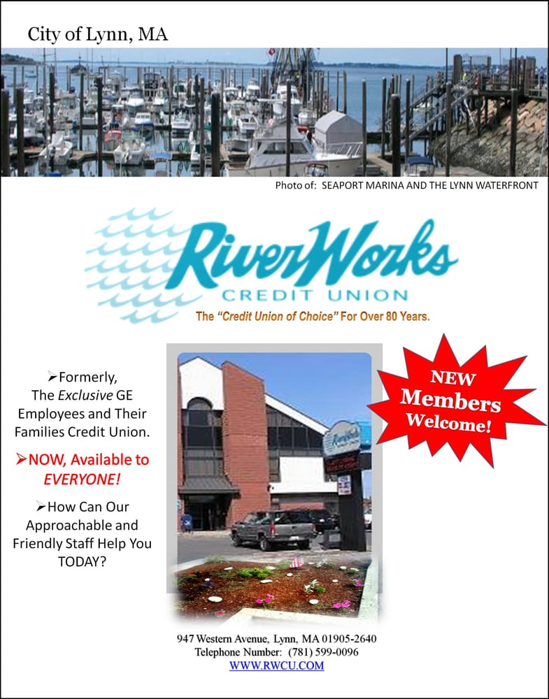RiverWorks Credit Union is a credit union that serves members with a wide array of financial products and services and a not-for-profit that invests profits back to members. Our field of membership includes those individuals and their families who live, or work in Essex County, Middlesex County and Suffolk County.