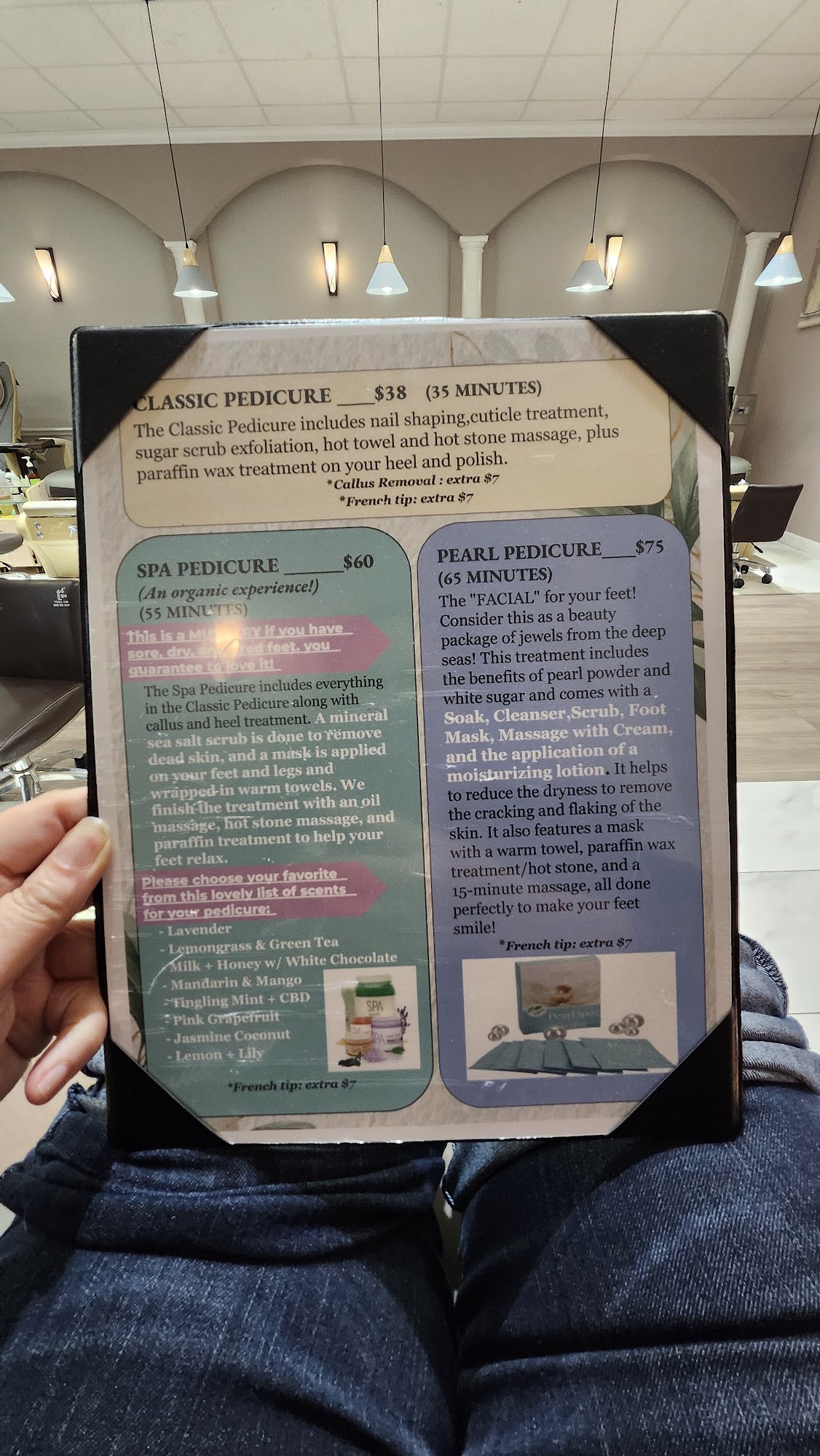 Kathy is the best! Consistently accommodating, nice and meticulous. The spa is clean and the color selection is great.