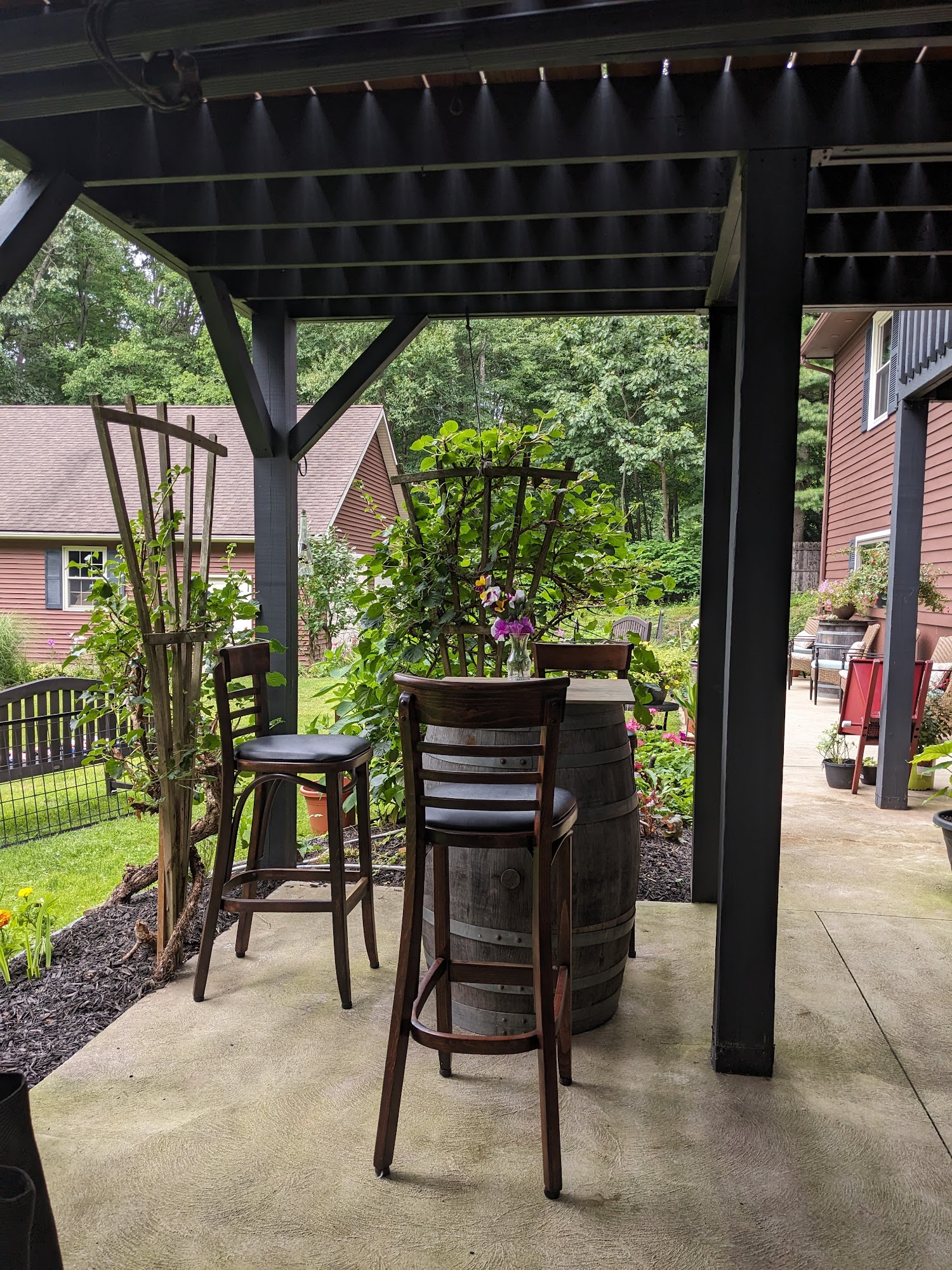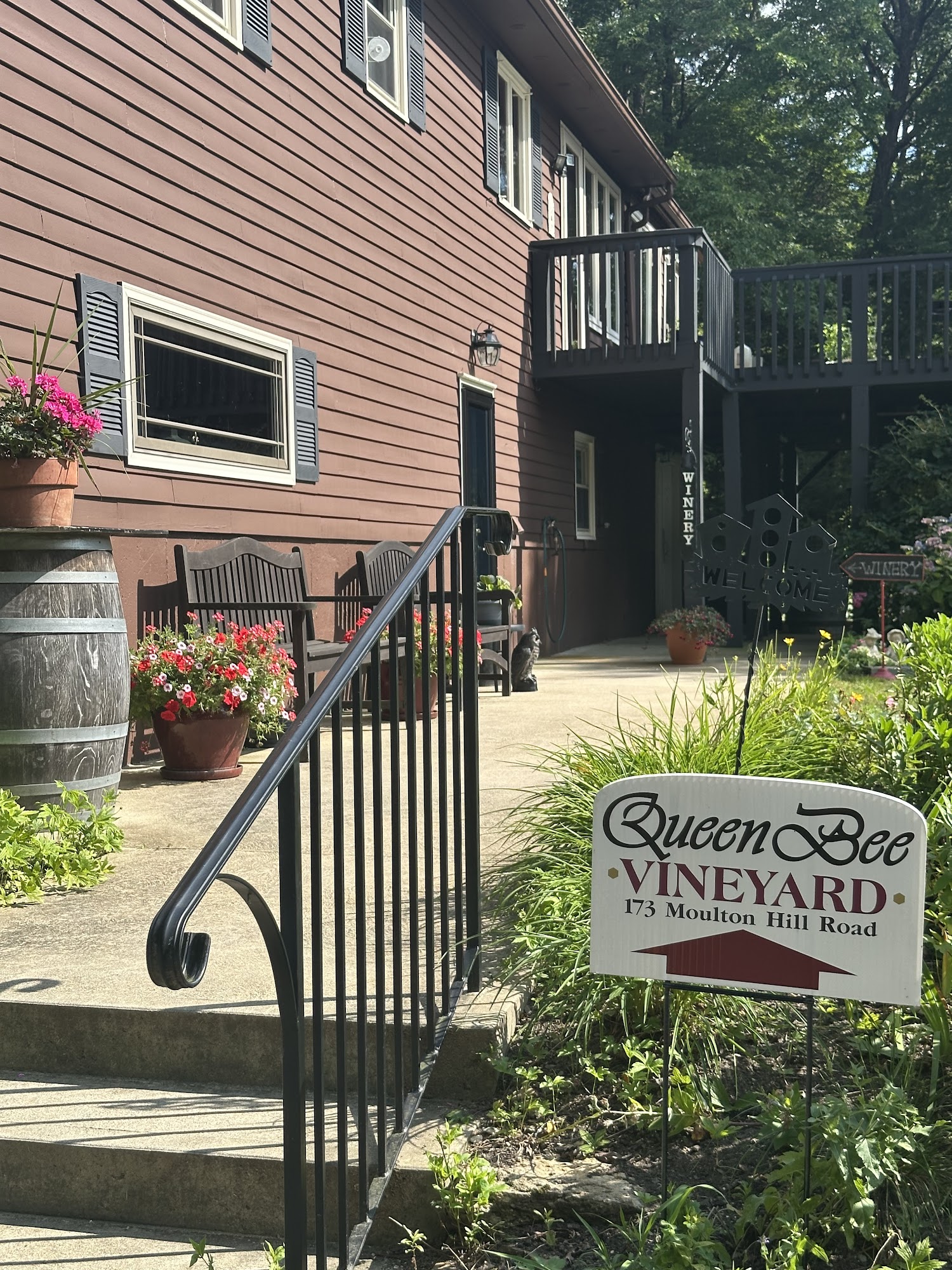 Queen Bee Vineyard is a beautiful and quaint place, constructed with love. It is a boutique winery where the vintner grows all grapes onsite, with limited production. The wines are amazing, great tasting, exquisite, very unique, surprisingly good, balanced, and complex. Visitors can enjoy a tasting of wines like the Whites—Vidal, Chardonel, Edelweiss—and Reds—Marquette, Vincent, Frontenac—with many aged 6-7 years. The owner is extremely nice, very knowledgeable, personable, optimistic, and a fabulous and awesome host. The experience is wonderful, with a fantastic and scenic view of the vineyard from the outdoor tasting area, alongside beautiful gardens. They do tastings only, with no food or opening of purchased bottles, and there is limited parking. The prices are great. It is a very pleasant surprise and a highly recommended stop in the area, rain or shine.