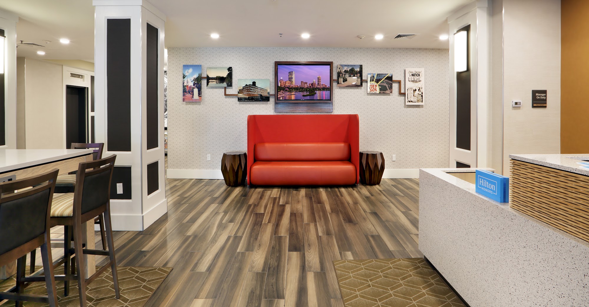 Hampton Inn Boston/Natick offers a comfortable and welcoming stay with friendly staff and a great location. Guests appreciate the clean, solid hotel with a mix of modern and Victorian-inspired decor that feels a bit fancy for the price. The attached Skybox 109 restaurant and bar provide a good variety of beers and classic American bar food, with friendly service and a lively atmosphere, including plenty of sports on large TVs. The hotel features a basic breakfast and small snack shop, making it convenient for guests. The front desk staff are praised for their kindness and helpfulness, creating a smooth check-in experience. Many guests mention feeling valued and welcomed, making it a memorable place to stay. Overall, Hampton Inn Boston/Natick is seen as a great choice for comfort, friendly service, and good value, with many returning for future visits.