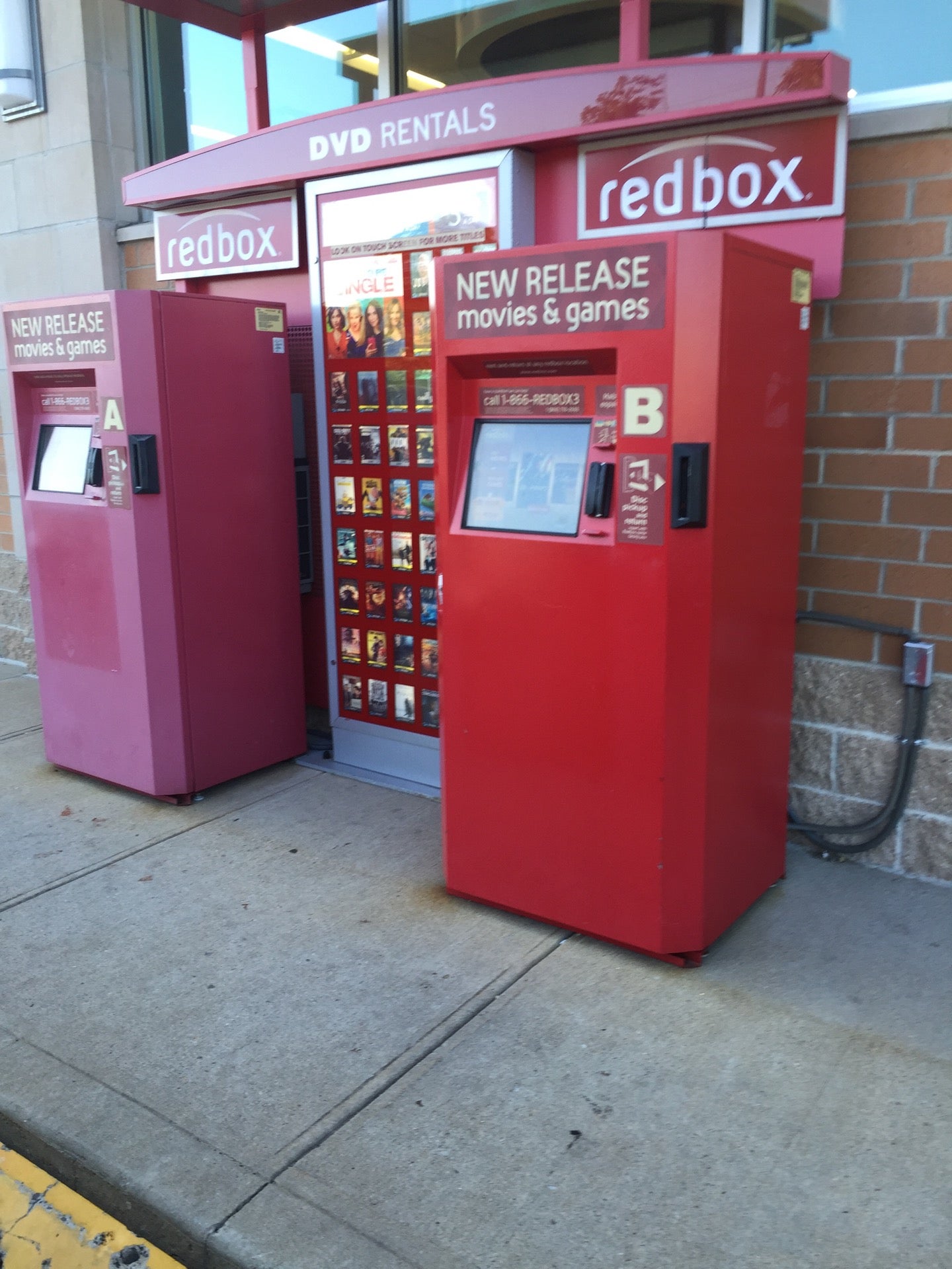 Nice place to go. Well lite area. Two machines to check for movies from. Very convenient if you live in the far No. End . Can also do a little shopping at Walgreens with the Redbox's being right there.