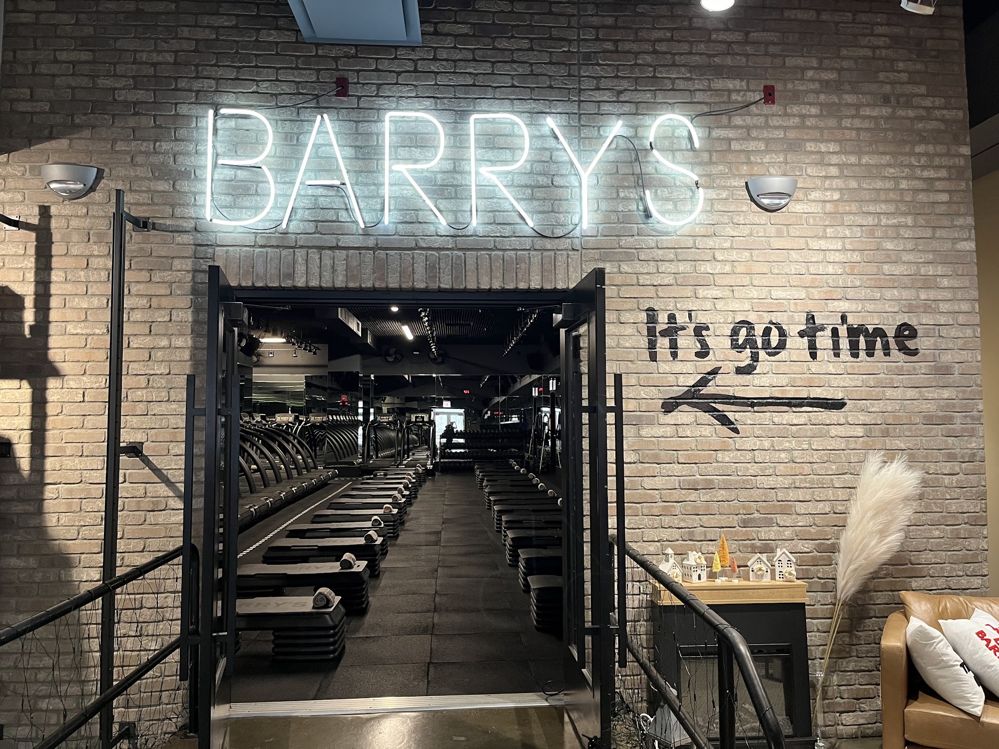 Barry's is a popular fitness studio that offers an intense and challenging workout experience. Located in a convenient Chestnut Hill location, the studio boasts a large and well-equipped space, with treadmills and weight stations set up close together. The classes at Barry's are a combination of running on the treadmill and strength training using the studio's extensive weight rack. Instructors guide participants through the high-intensity interval training, shouting out numbers and cues that can be confusing for new members. However, the instructors are praised for their energy and ability to motivate the class, pushing participants to their limits while also providing grace and understanding. Reviewers note that the classes can be quite overwhelming for first-timers, with a lack of clear instruction on how to set up the equipment and follow the instructor's cues. However, those who stick with it find that the workout is incredibly effective, leaving them feeling accomplished and on top of the world after each session. The studio also offers amenities such as locker rooms with showers, a fuel bar, and a retail area with recovery tools like massage guns. Overall, Barry's provides a challenging and invigorating fitness experience for those seeking a high-intensity workout in a supportive and energetic environment.