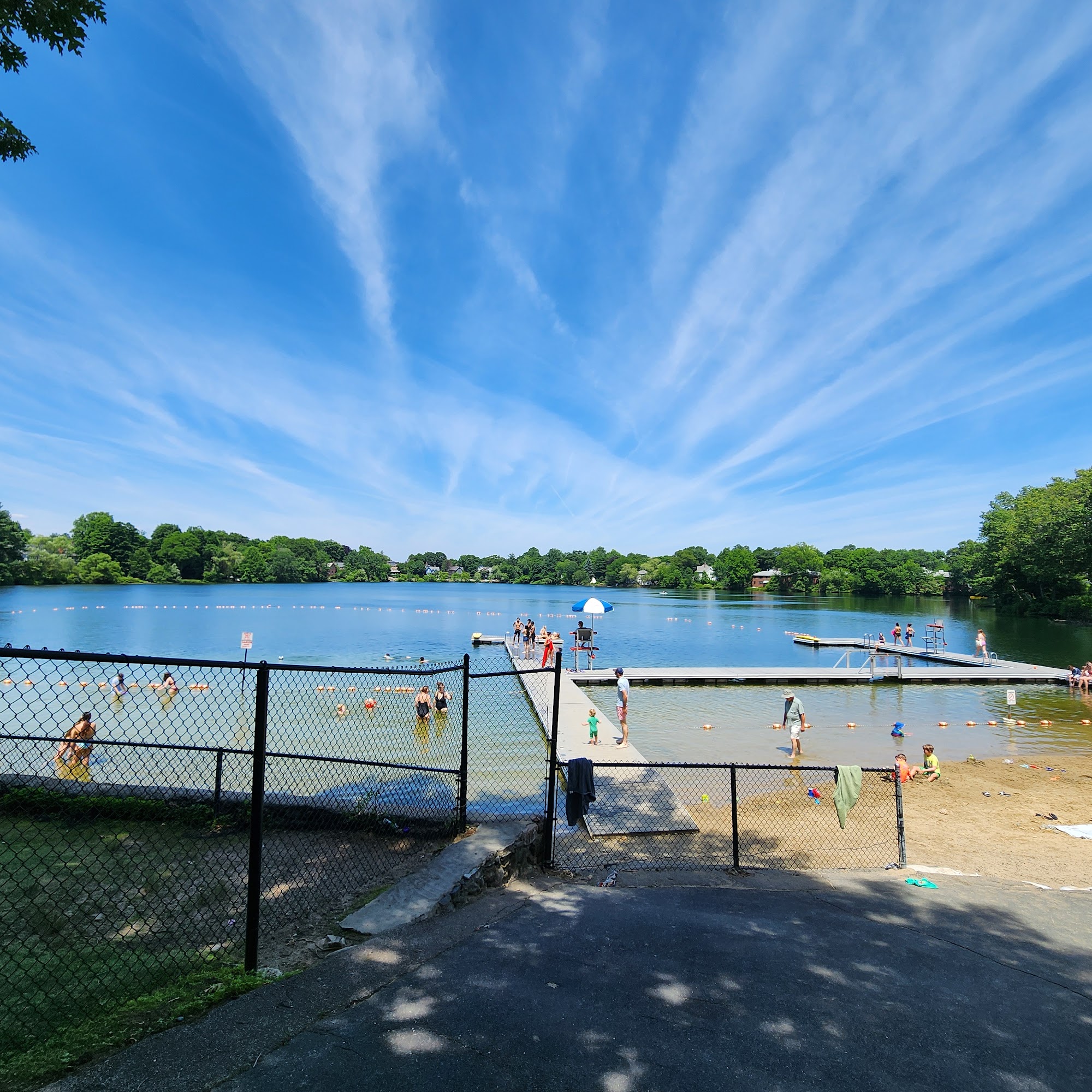 Crystal Lake Beach is a public beach area that offers a decent spot for swimming and relaxation. While it's not a free-to-enter location, it does have lifeguards on duty to ensure safety. The beach is divided into separate sections for babies, kids, and toddlers, allowing for a family-friendly environment. The lake itself is described as very nice, with the shallows heating up nicely during the summer months. However, the management of the beach has drawn some criticism. The beach opens at 1 pm on weekends, which is considered a ridiculous schedule, forcing visitors who arrive earlier to climb over the fence to access the area. This has been described as a "circus" and has left some feeling like they are being treated unfairly. Additionally, the beach layout can be unclear, and there have been reports of trash and potential pet waste in the water, which has deterred some visitors from staying. Overall, Crystal Lake Beach offers a decent swimming spot, but the management and maintenance of the area could use some improvement to provide a more enjoyable experience for all visitors.