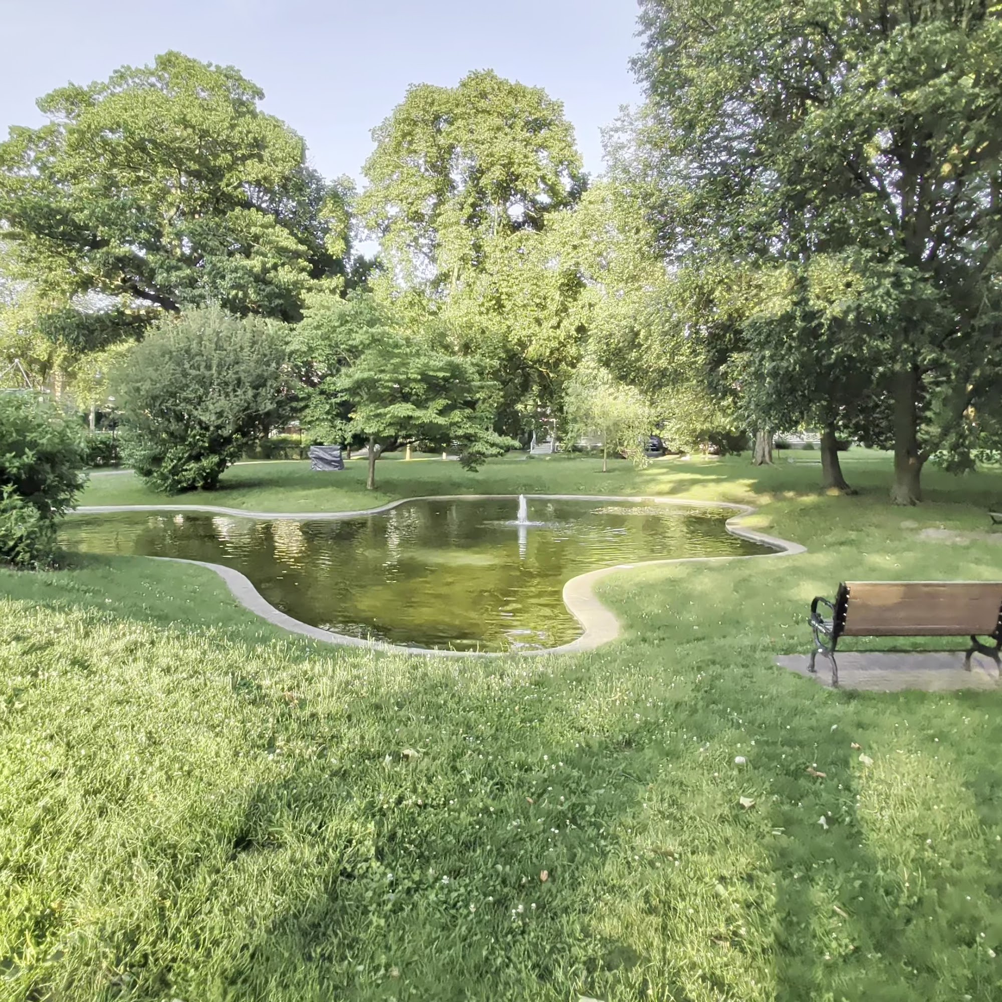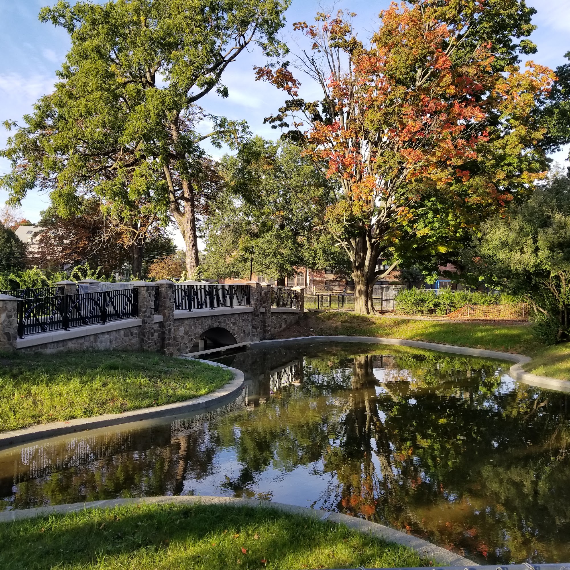 Farlow Park is a quiet and beautiful spot with two playgrounds—one modern for older children and a more traditional, gated area for younger kids. The park features a pond, a field near a bike path, and shaded areas with benches, making it ideal for relaxing walks and enjoying nature. Visitors often see squirrels, birds, and occasional turkeys, and can hear their echoes under a small bridge over the pond. The park is dog-friendly, allowing visitors to bring their pets. While there are no public restrooms or picnic tables, the park is well-maintained and surrounded by a tree-lined neighborhood, making it a peaceful place to stroll and enjoy nature.