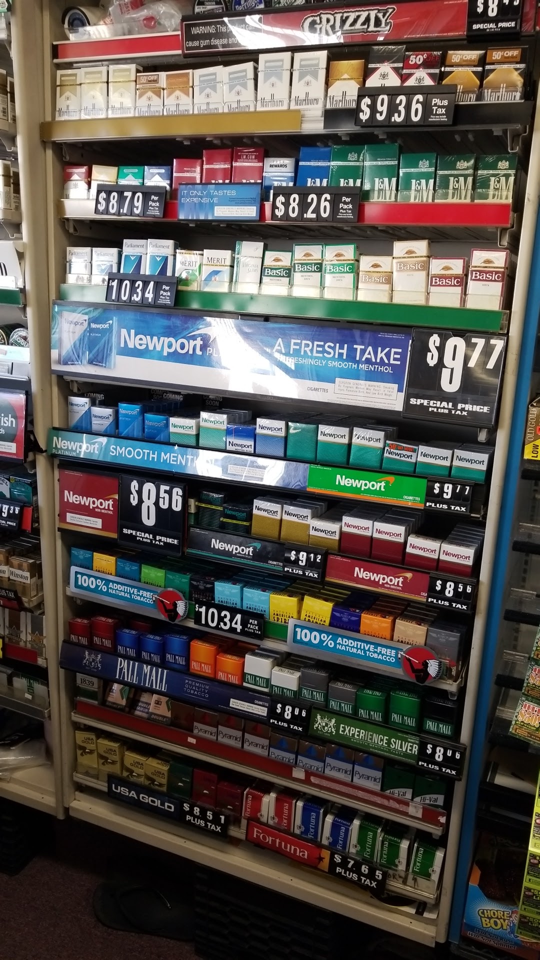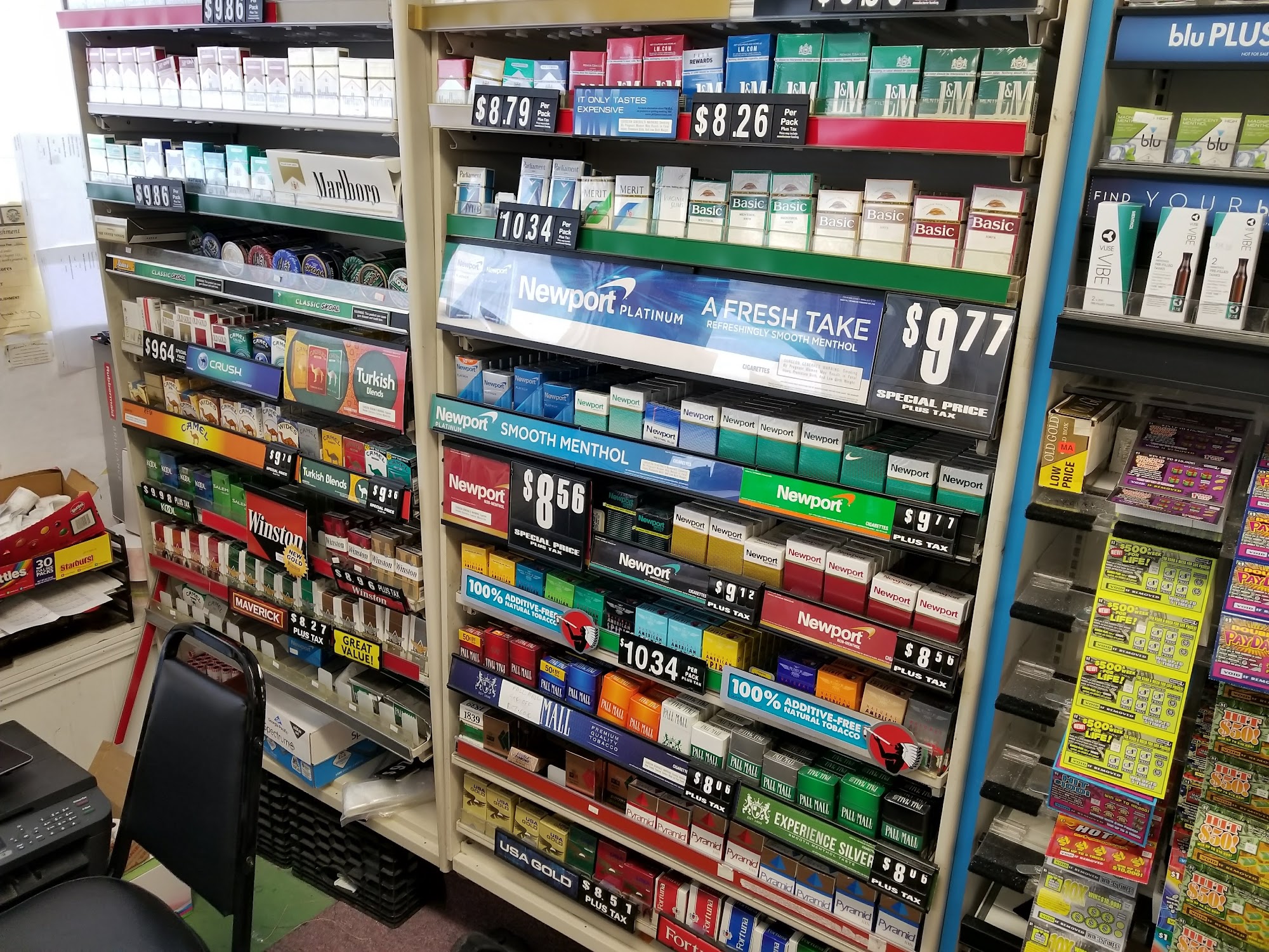 Plenty of parking , easy to excess , almost find every thing for the daily use & HUGE collection of Instant tickets , Great service & best prices for tobacco & papers.