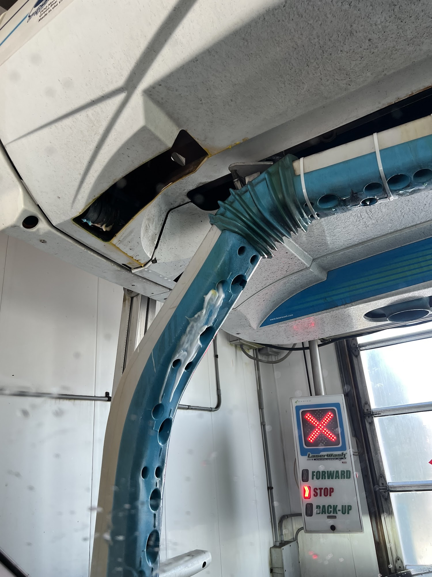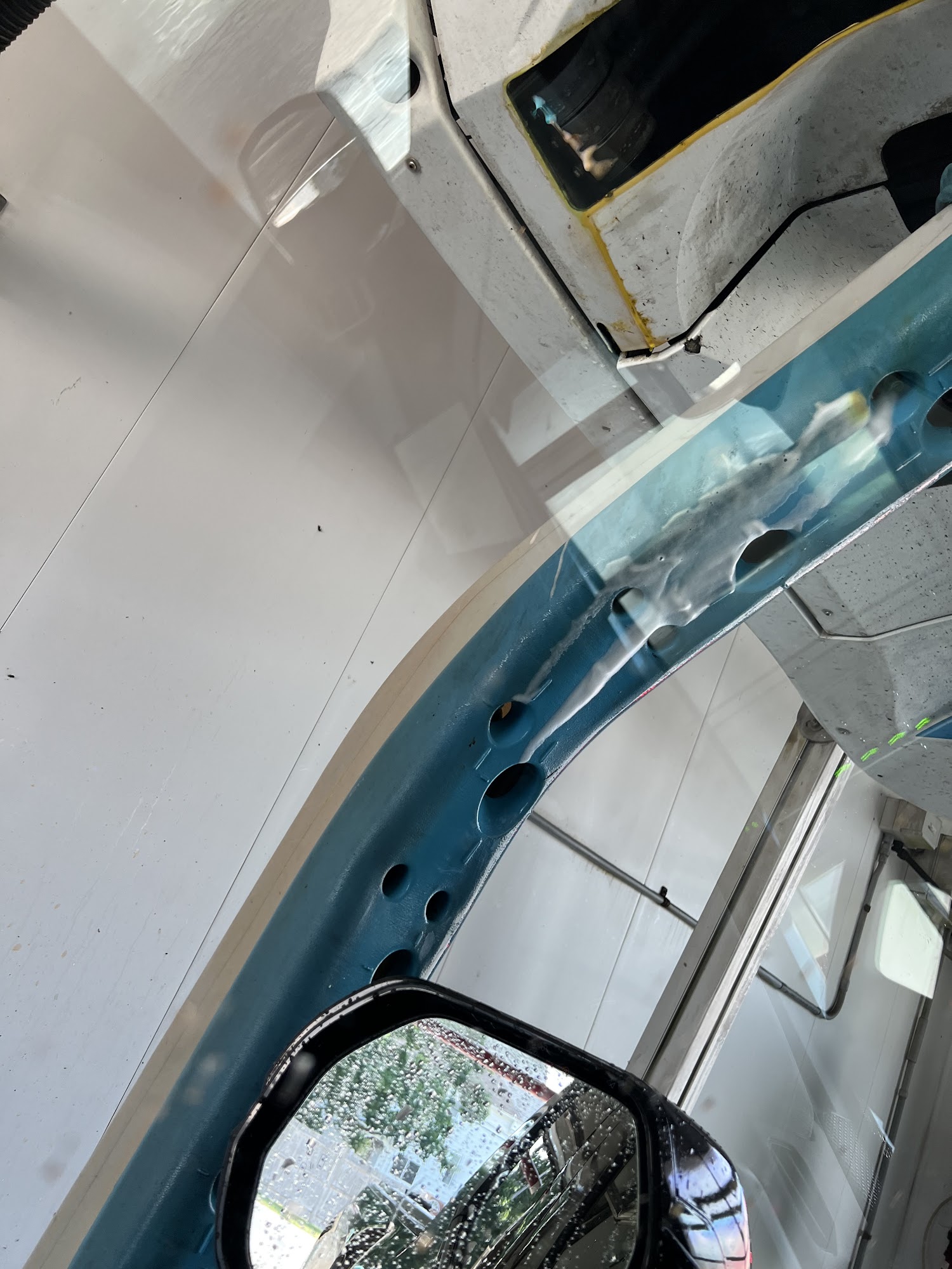 It was a long line, as only one out of two was open. The car wash did not take all the dirt from windows and doors.