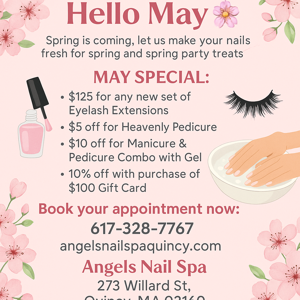 Looking for a trusted nail salon near me? Angels Nail Spa Quincy is your go-to destination in Quincy for expert nail care and relaxing spa treatments. Our skilled technicians provide high-quality manicures, pedicures, acrylics, gel nails, and more in a clean and welcoming environment. Whether you want classic styles or trendy nail art, we tailor every service to your needs. Experience exceptional customer care at the top nail salon Quincy clients love. Visit Angels Nail Spa Quincy today and treat yourself to beautiful nails and ultimate relaxation!