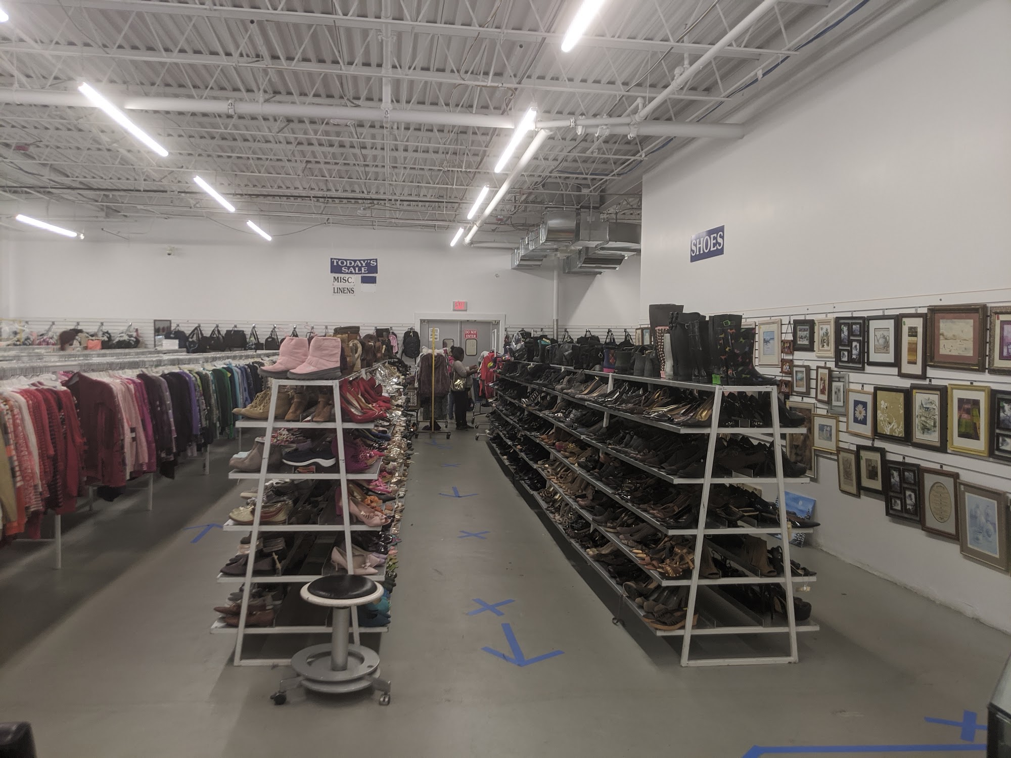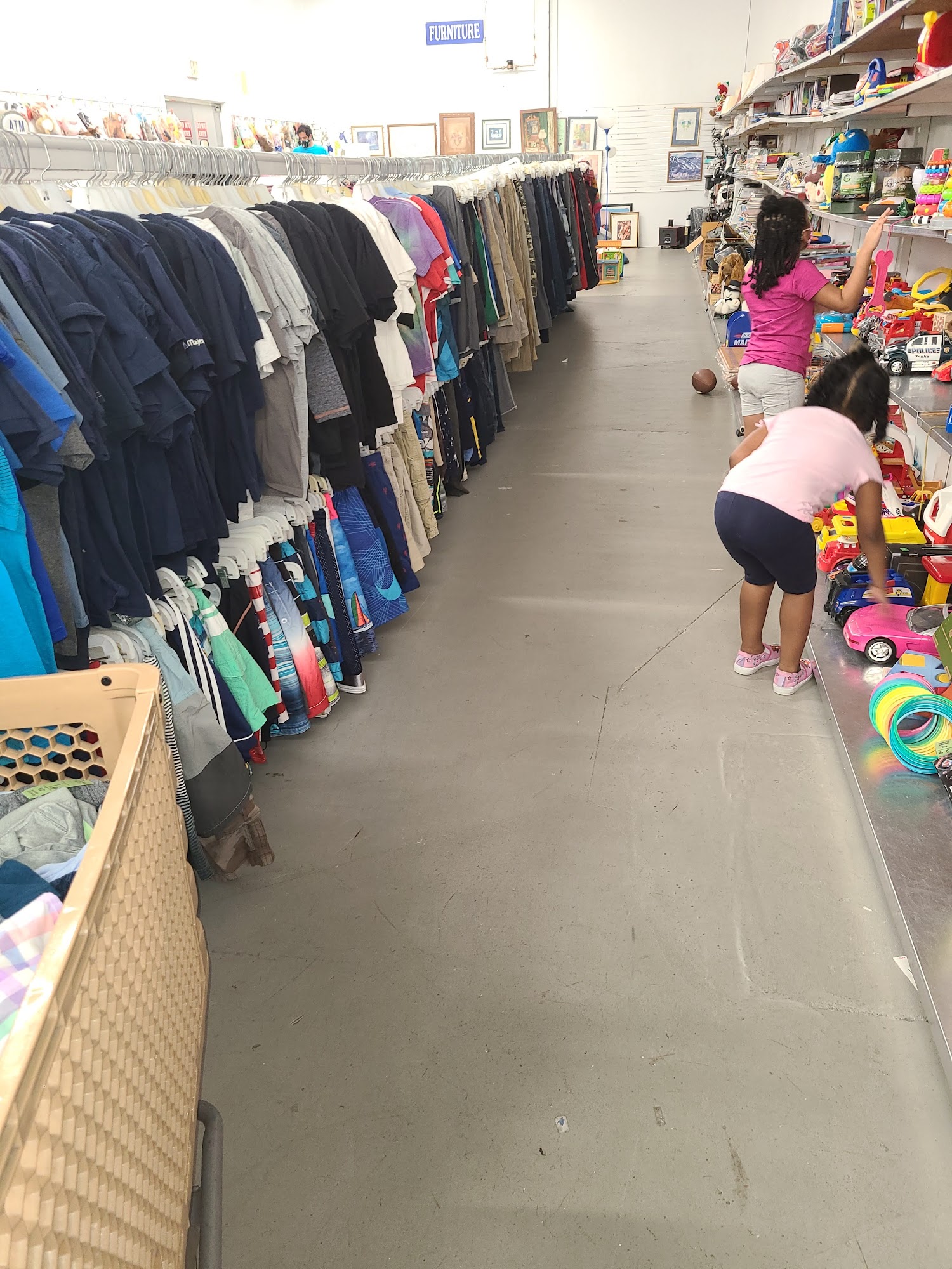 Huge stock of clothing that is well organized. Little furniture and some housewares.