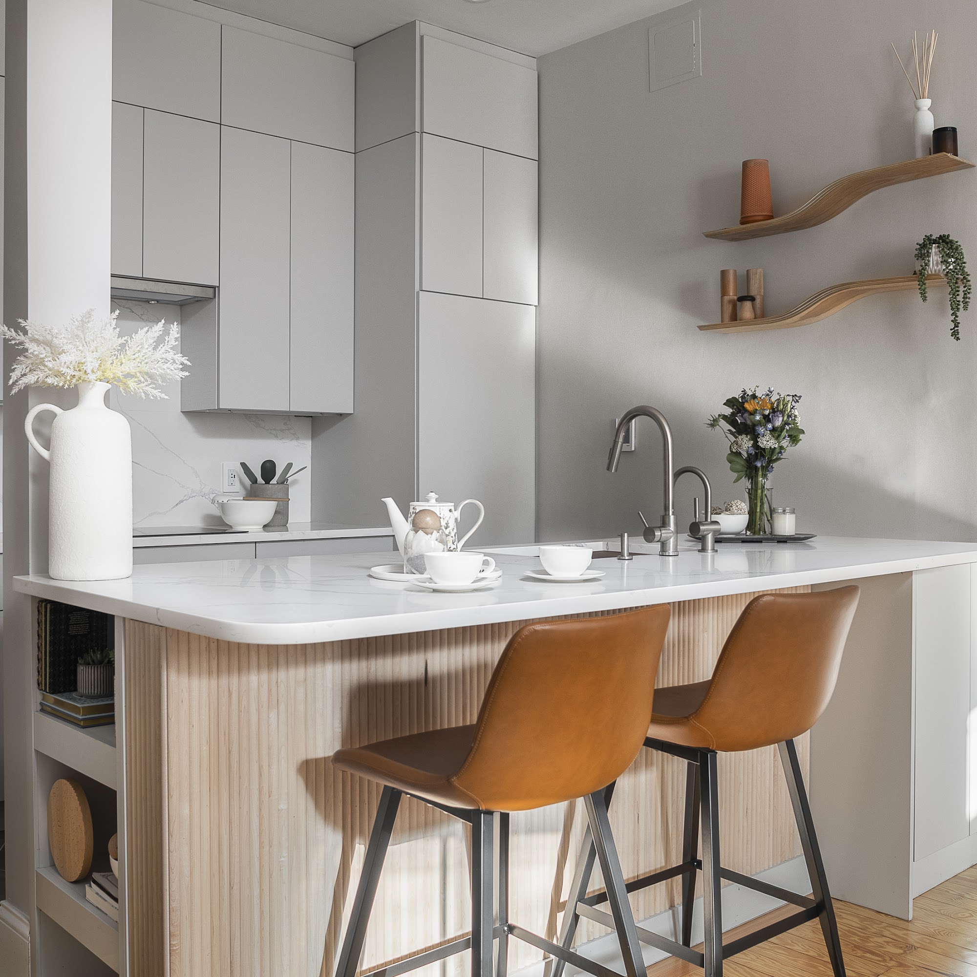 Ksana worked closely with us to translate our style inspirations and practical needs into a plan that works perfectly for our space. We were able to transform a very strangely laid out kitchen into a new kitchen space with an added half bath and entryway -- that somehow feels much larger because of Ksana's solid design...