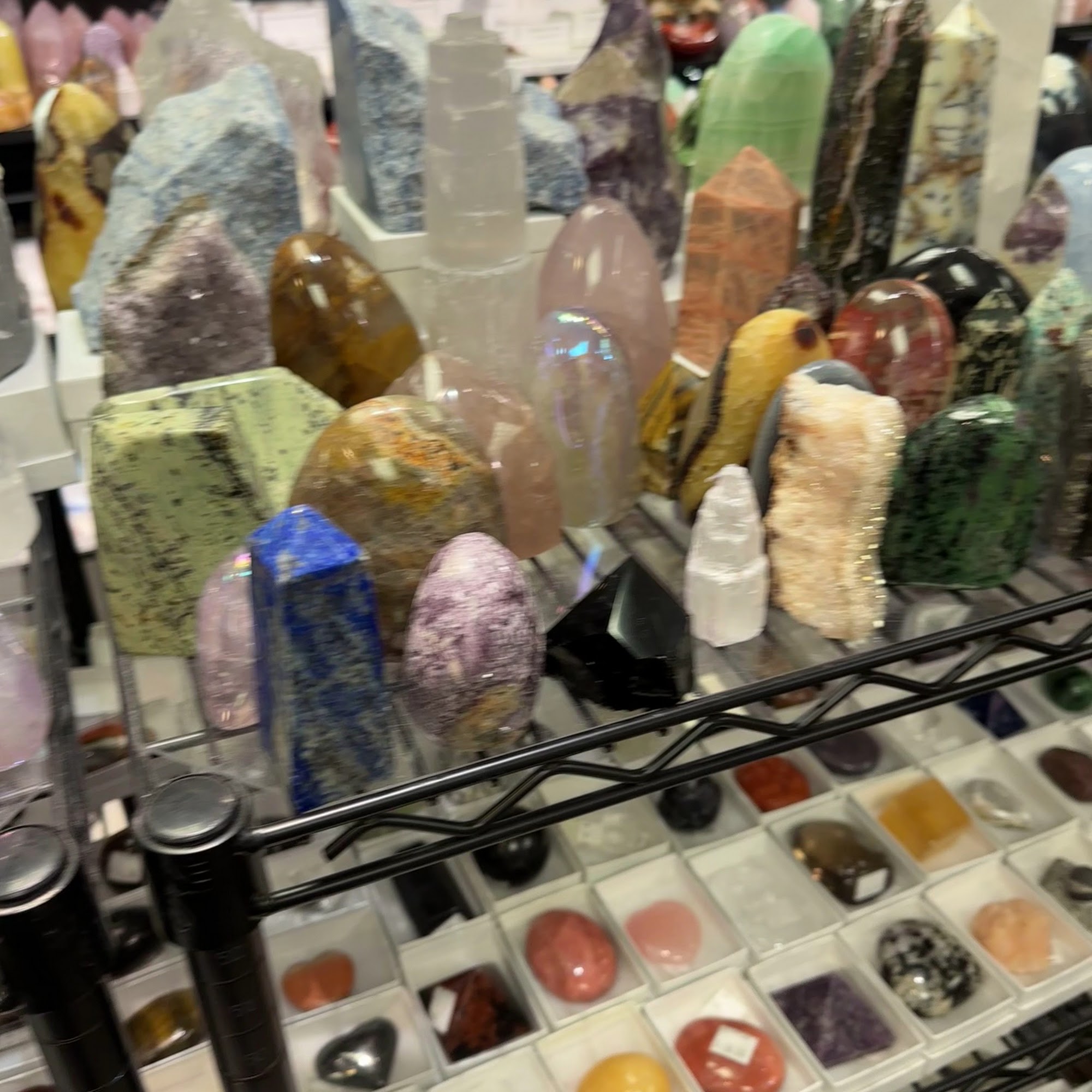 Village Silversmith is a wonderful shop in historical Salem. It offers a great eclectic mix and an abundance of all types of crystals, interesting rocks, and minerals. The store has a huge selection of silver jewelry, including every staple like chain necklaces, bracelets, charms, hoop earrings, a huge array of stud earrings, fun rings, and anklets. The jewelry is well priced, with lots of good selections and great options, definitely among the best priced in Salem. The staff are very cool, hip, and wonderful. It is a very tight storefront with not a lot of space, but it is a really nice shop with unique pieces.