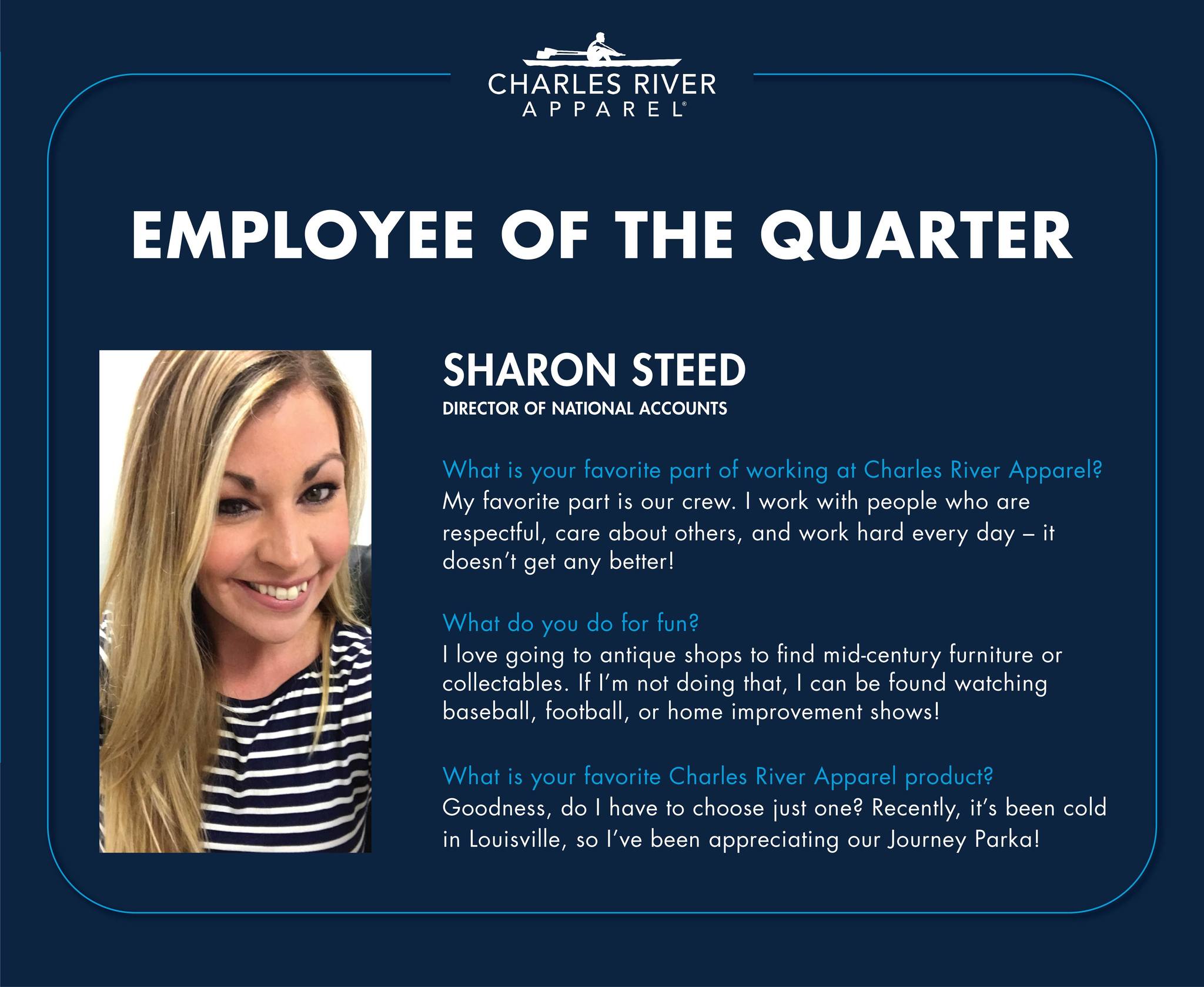 I love doing business with this company. Great quality, great service and very helpful in outfitting my friends for golf events.Also wanted to thank Barry for helping the people of Mayfield Kentucky afterthe terrible tornado destoyed their town.
