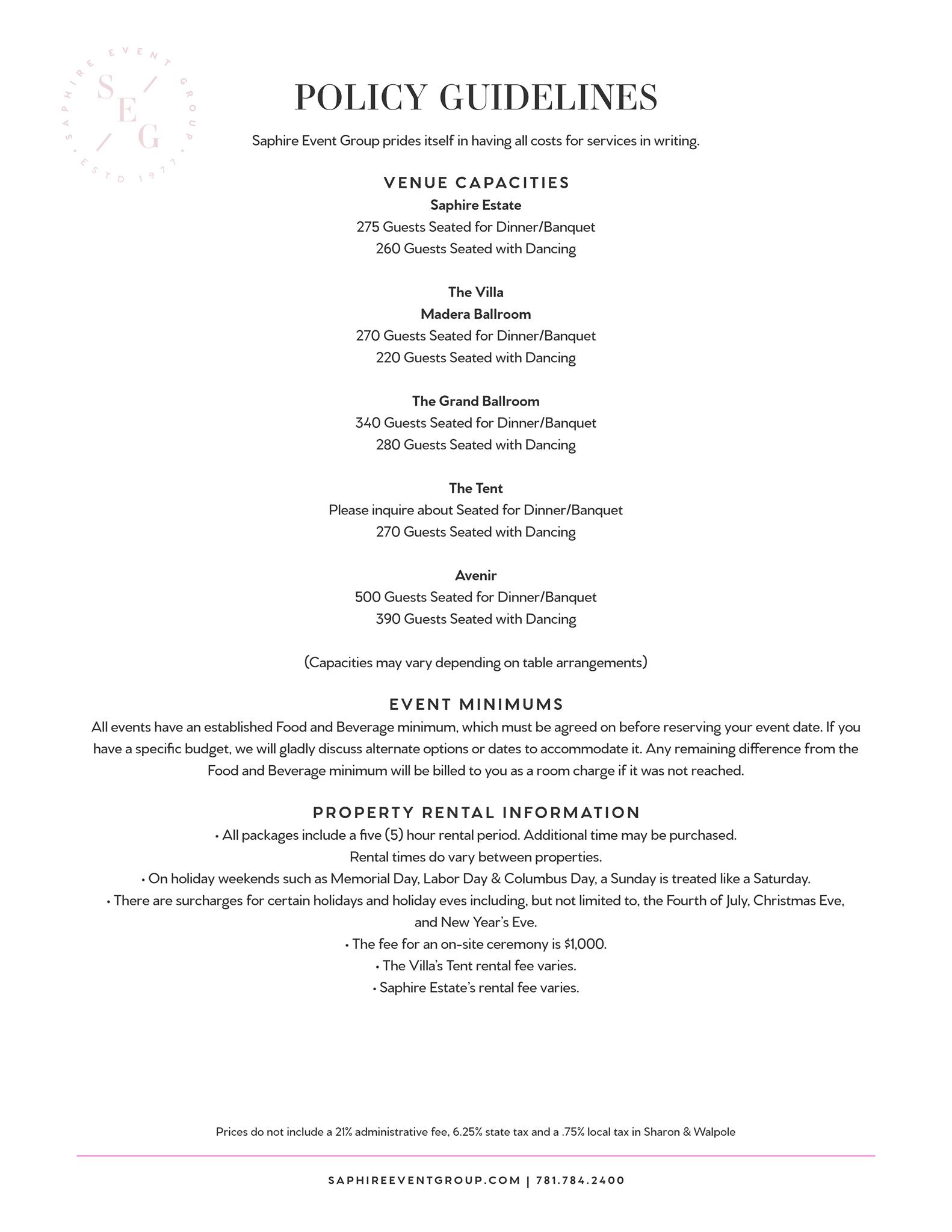 We loved every aspect of our wedding planning with SEG! We worked with Kayla until our wedding day and then on our day Jeannine and Judy were awesome additions. Even though it rained, everyone executed the best plan B for us! We'd recommend SEG and especially the Saphire Estate venue to everyone.