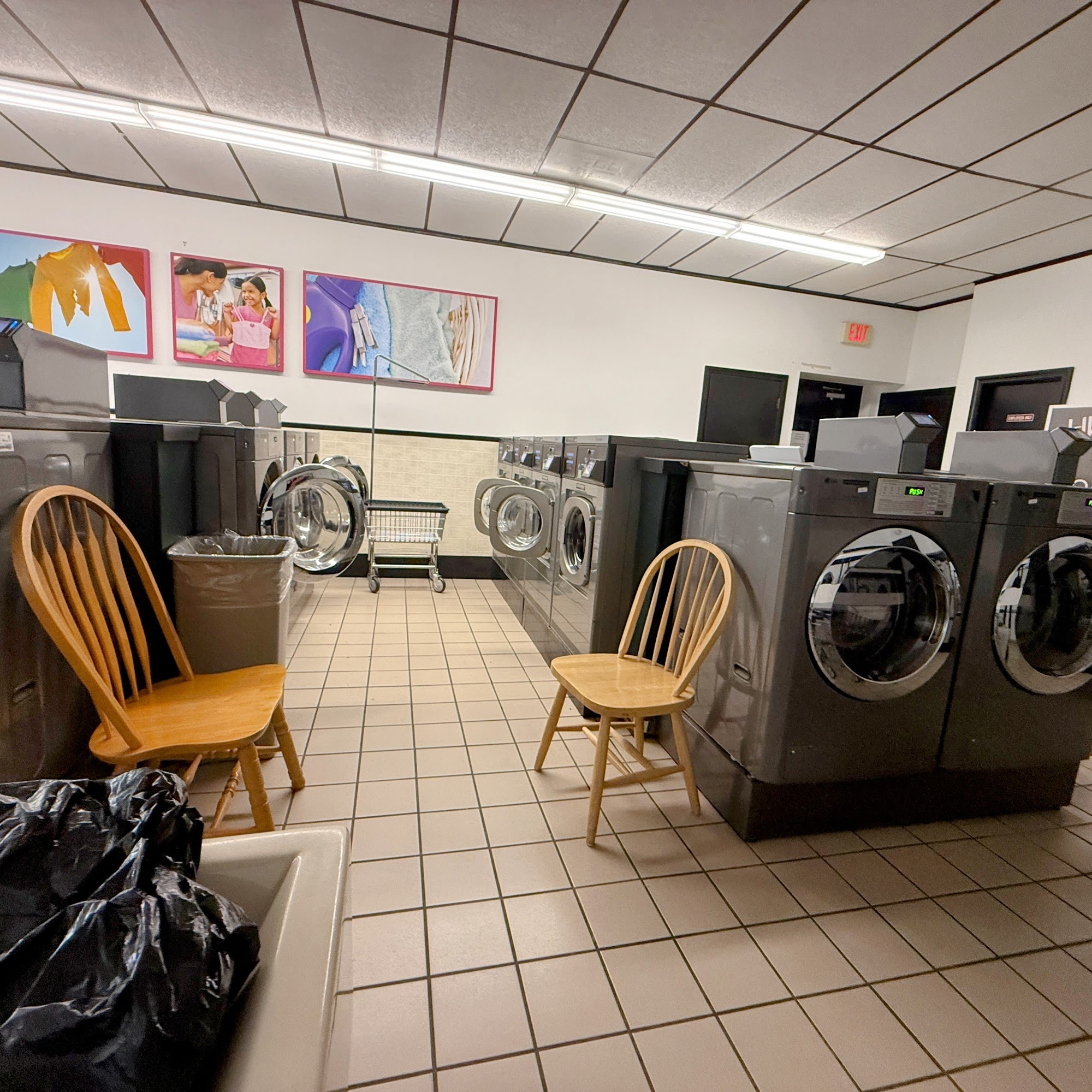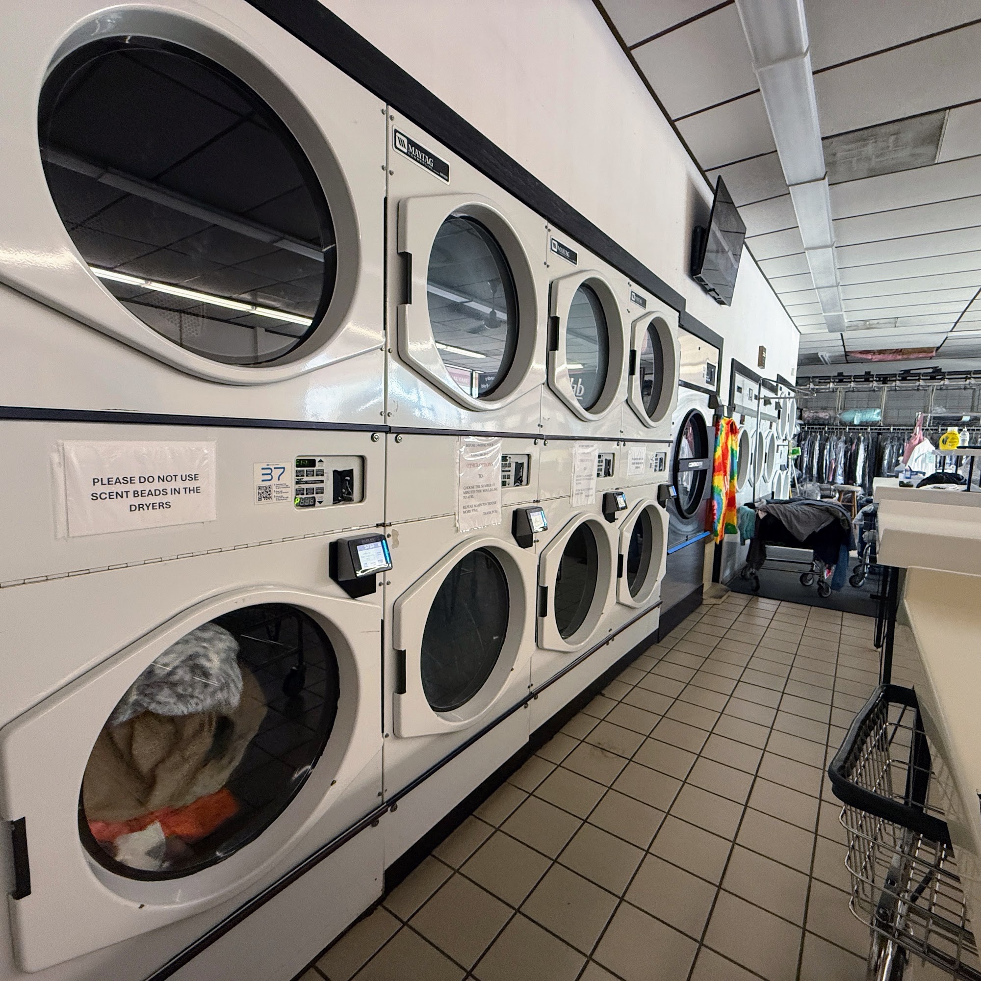 Location is clean and attendant helpful. Washers are modern and strong. I saved some money drying towels fully and taking the rest to hang at house.
