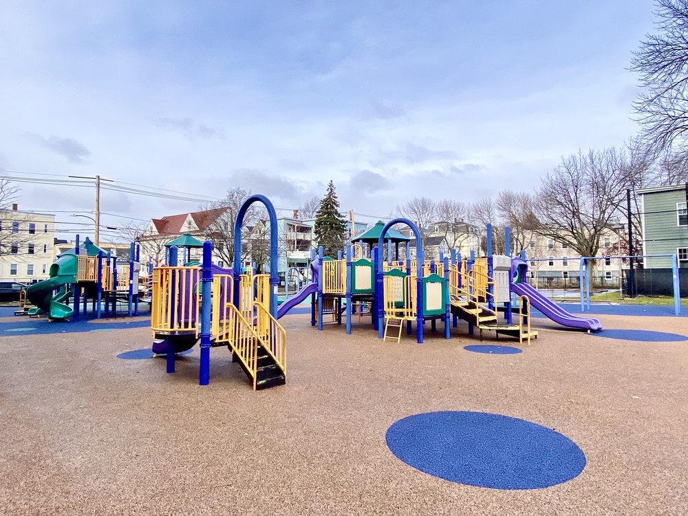 Nice park- but Maria’s most recent photos are not of this park. It’s a mistake. There is no splash pad or super tall climbing structures