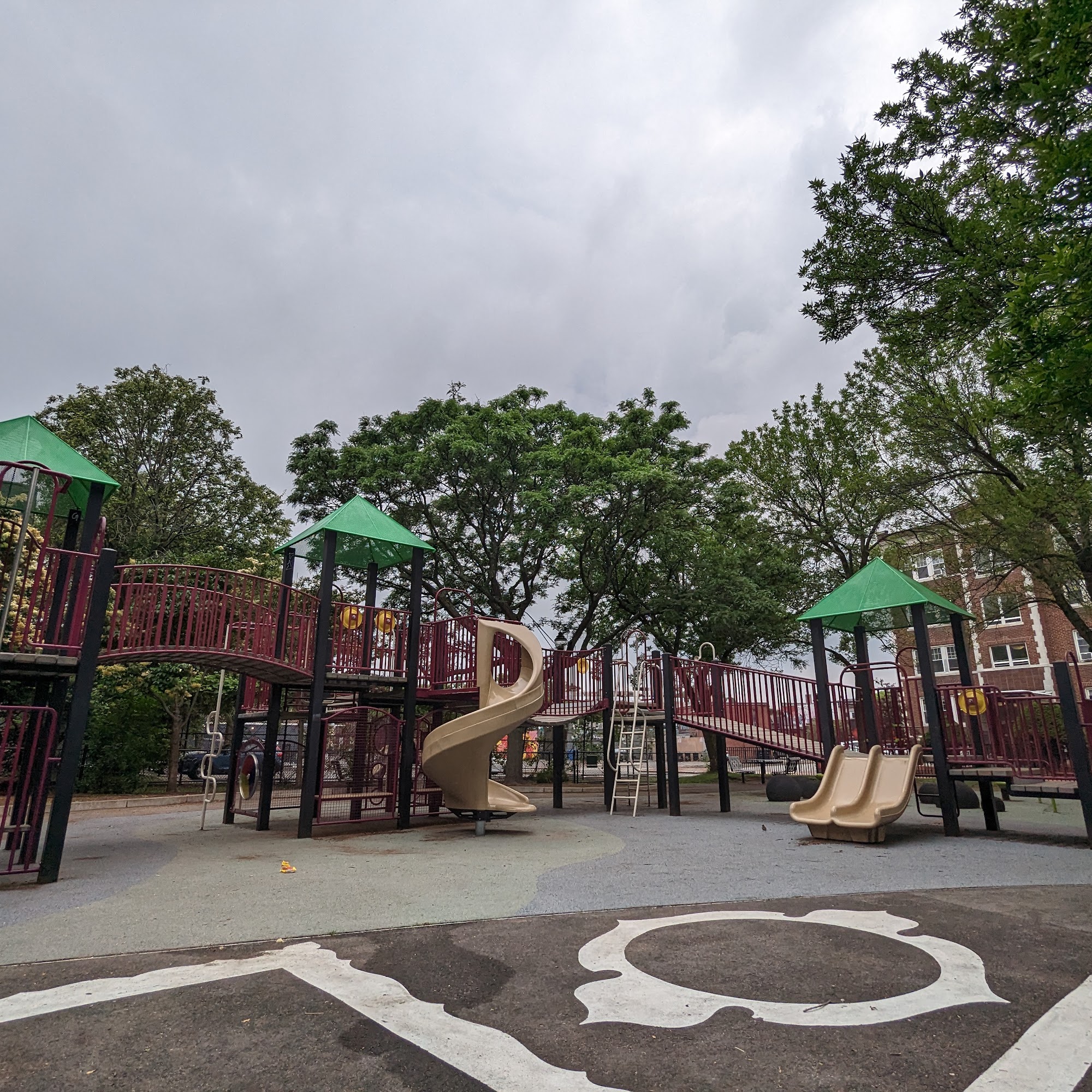 Kenney Park is a clean public park and playground with a great, fenced playground for kids, including swings, slides, and a climbing structure. It features a basketball court and a splash pad water feature for aquatic fun in the summer, though the splash area is outside the fenced playground near a busy street. The park has picnic tables and benches, with additional seating sometimes provided in summer. It is a comprehensive neighborhood space for family activities, though it can be hard to park and the playground equipment lacks direct shade.