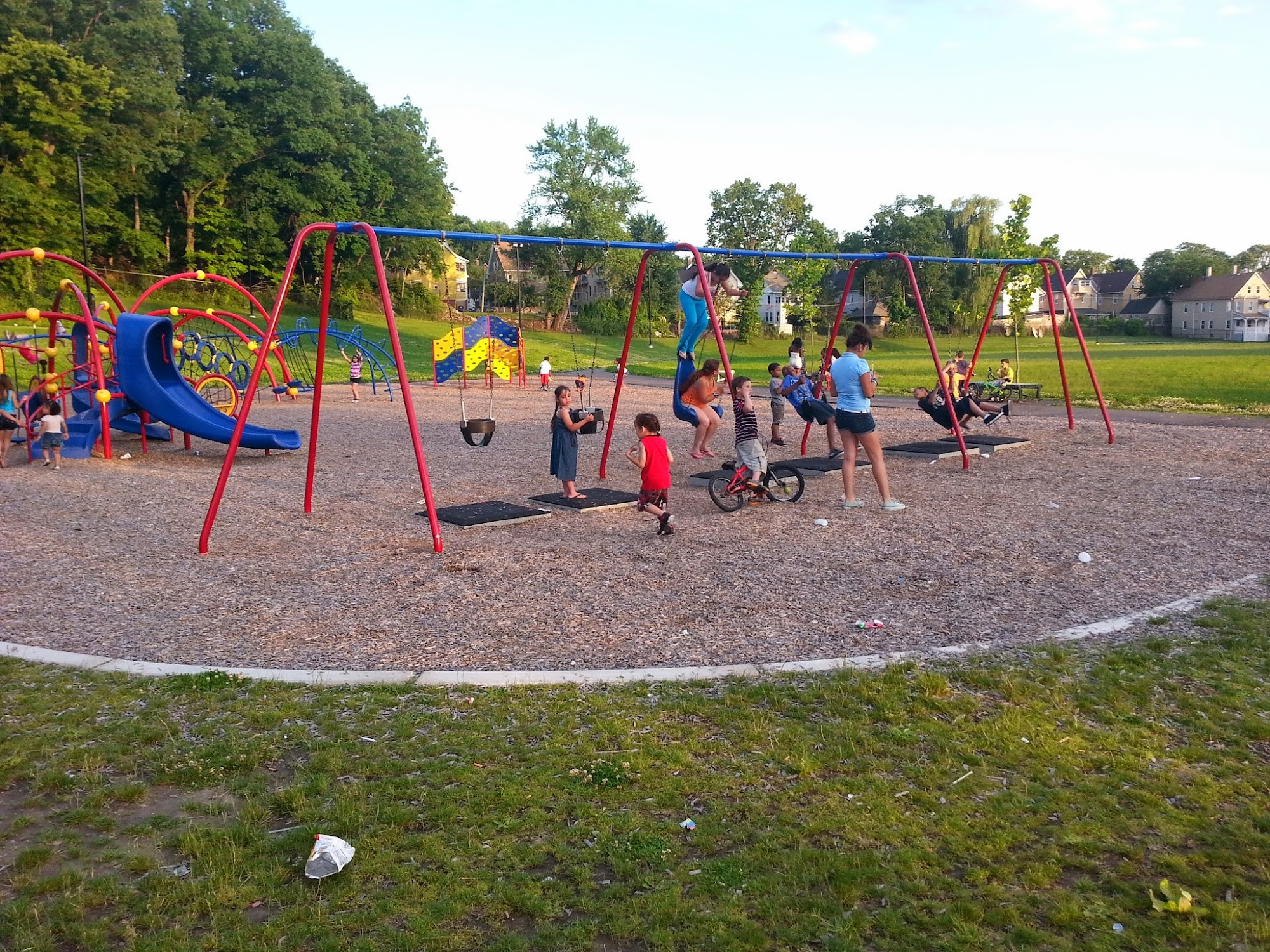 I went for a while to share and play with Christmas gifts. Very good place for children. Equipment safety. Large play area. Jetties, swings, tubes, and green backs. Lighting perhaps because it is very little winter time. But daylight is perfect for playing there.