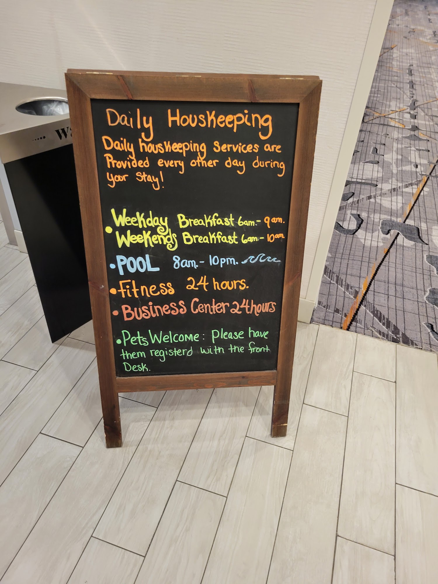 The hotel is okay, however we were placed in a connecting room with a barking dog next door. The guests were noisy all night. Breakfast was limited and location is near the freeway... not much great food places in the area. Overall, the hotel is okay if you're seeking to stay on a budget.